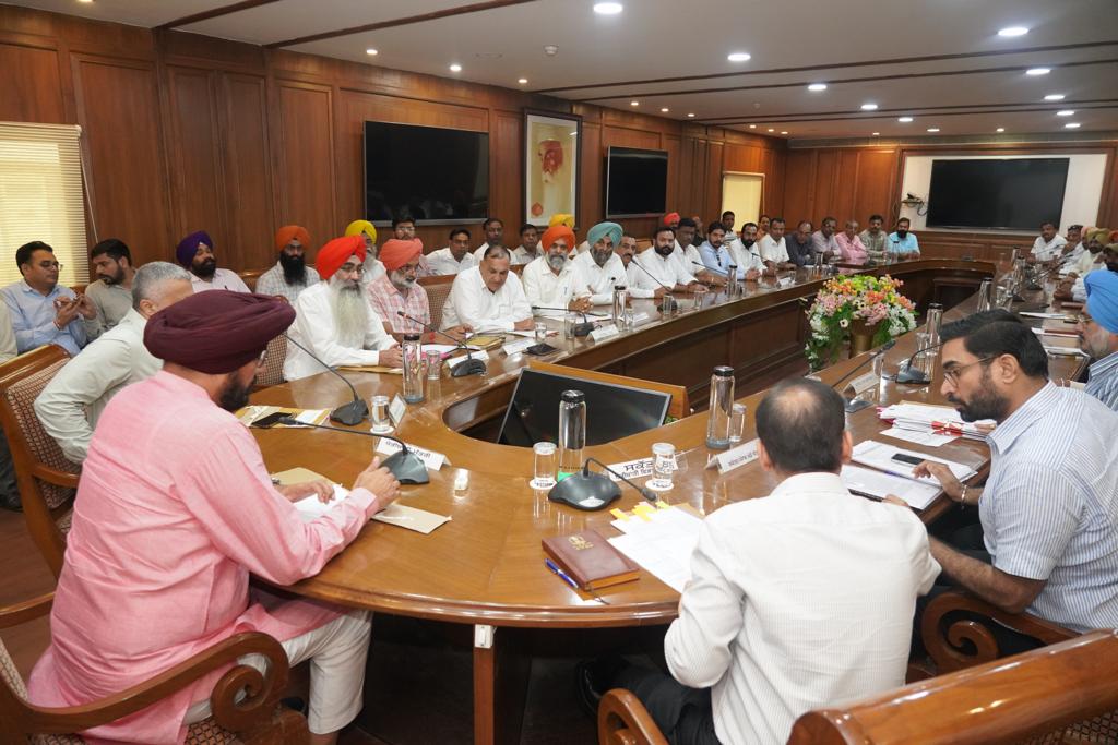 ਚੰਡੀਗੜ੍ਹ, 9 ਸਤੰਬਰ: ਪੰਜਾਬ ਸਰਕਾਰ ਵਲੋਂ ਨਰਮੇ ਦੀ ਫਸਲ ‘ਤੇ ਆੜਤ ਬਾਰੇ ਫੈਸਲਾ ਲੈਣ ਲਈ 9 ਮੈਂਬਰੀ ਕਮੇਟੀ ਦਾ ਗਠਨ ਕਰਨ ਦਾ ਫੈਸਲਾ ਲਿਆ ਗਿਆ ਹੈ। ਅੱਜ ਇੱਥੇ ਪੰਜਾਬ ਭਵਨ ਵਿਖੇ ਆੜਤੀਆਂ, ਕਿਸਾਨਾਂ ਅਤੇ ਨਰਮਾਂ ਮਿੱਲ ਮਾਲਕਾਂ ਨਾਲ ਸੱਦੀ ਮੀਟਿੰਗ ਉਪਰੰਤ ਜਾਣਕਾਰੀ ਸਾਂਝੀ ਕਰਦਿਆਂ ਖੇਤੀਬਾੜੀ ਮੰਤਰੀ ਕੁਲਦੀਪ ਸਿੰਘ ਧਾਲੀਵਾਲ ਨੇ ਦੱਸਿਆ ਕਿ ਨਰਮਾਂ ਕਿਸਾਨਾਂ ਅਤੇ ਆੜਤੀਆਂ ਦੇ ਵੱਖ ਵੱਖ ਮਸਲੇ ਸਹਿਮਤੀ ਨਾਲ ਨਿਬੇੜਨ ਲਈ ਖੇਤੀਬਾੜੀ ਵਿਭਾਗ ਦੇ ਵਧੀਕ ਮੁੱਖ ਸਕੱਤਰ ਸਰਵਜੀਤ ਸਿੰਘ ਅਤੇ ਮੁੱਖ ਮੰਤਰੀ ਦੇ ਵਿਸੇਸ਼ ਮੁੱਖ ਸਕੱਤਰ ਅਤੇ ਮੰਡੀ ਬੋਰਡ ਦੇ ਸਕੱਤਰ ਰਵੀ ਭਗਤ ਦੀ ਹਾਜ਼ਰੀ ਵਿਚ ਅੱਜ ਦੀ ਮੀਟਿੰਗ ਸੱਦੀ ਗਈ ਸੀ।ਖੇਤੀਬਾੜੀ ਮੰਤਰੀ ਨੇ ਦੱਸਿਆ ਕਿ ਮੁੱਖ ਮੰਤਰੀ ਭਗਵੰਤ ਮਾਨ ਦੀ ਅਗਵਾਈ ਵਾਲੀ ਸਰਕਾਰ ਵਲੋਂ ਸੂਬੇ ਦੀ ਤਰੱਕੀ ਲਈ ਸਭ ਦੇ ਹਿੱਤਾਂ ਦੀ ਰਾਖੀ ਕੀਤੀ ਜਾਵੇਗੀ ਇਸੇ ਕਾਰਨ ਅੱਜ ਦੀ ਮੀਟਿੰਗ ਵਿਚ ਸਾਝੇਂ ਤੌਰ ‘ਤੇ ਸਭ ਨੂੰ ਸੁਣ ਕੇ ਕਈ ਮਸਲੇ ਮੌਕੇ ‘ਤੇ ਹੀ ਹੱਲ ਕਰ ਦਿੱਤੇ ਗਏ।