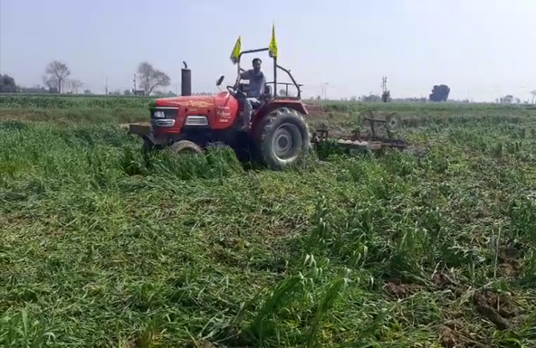 ਸ਼੍ਰੀ ਮੁਕਤਸਰ ਸਾਹਿਬ (ਅਨਮੋਲ ਵੜਿੰਗ) : ਕਾਲੇ ਖੇਤੀ ਕਨੂੰਨ ਦੇ ਵਿਰੋਧ ਵਿਚ ਕਿਸਾਨ ਵਲੋਂ ਲਗਾਤਾਰ ਸਗਰਸ਼ ਕੀਤਾ ਜਾ ਰਿਹਾ ਹੈ ਪਰ ਕੇਂਦਰ ਸਰਕਾਰ ਅਜੇ ਵੀ ਆਪਣੇ ਅੜੀਅਲ ਵਤੀਰੇ ਪਰ ਹੈ ਇਸ ਦੇ ਚਲਦੇ ਕਿਸਾਨਾਂ ਵਲੋਂ ਸ਼ਹੀਦੀਆਂ ਦਿੱਤੀਆਂ ਜਾ ਰਹੀਆਂ ਹਨ ਦੂਸਰੇ ਪਾਸੇ ਕਿਸਾਨਾਂ ਵਲੋਂ ਆਪਣੀ ਫ਼ਸਲ ਨੂੰ ਵਹਾ ਕੇ ਸਗਰਸ਼ ਦਾ ਸੰਦੇਸ਼ ਦਿੱਤਾ ਜਾ ਰਿਹਾ ਹੈ ਇਸ ਦੇ ਚਲਦੇ ਅੱਜ ਹਲਕਾ ਲੰਬੀ ਪਿੰਡ ਪਕੀ ਟਿੱਬੀ ਦੇ ਇਕ ਛੇ ਏਕੜ ਵਾਲੇ ਕਿਸਾਨ ਮਹਿਮਾ ਸਿੰਘ ਨੇ ਆਪਣੀ ਤਿਨ ਏਕੜ ਕਣਕ ਦੀ ਖੜੀ ਫ਼ਸਲ ਵਹਾ ਕੇ ਰੋਸ਼ ਪ੍ਰਗਟ ਕੀਤਾ ਅਤੇ ਚੇਤਾਵਨੀ ਦਿਤੀ ਕੇ ਜਿਨ੍ਹਾਂ ਤੱਕ ਕਾਲੇ ਕਨੂੰਨ ਰੱਦ ਨਹੀਂ ਕੀਤੇ ਜਾਂਦੇ ਸਾਨੂੰ ਫ਼ਸਲ ਤਾਂ ਕਿ ਹਰ ਕੁਰਬਾਣੀ ਦੇਣੀ ਪਵੇ ਅਸੀਂ ਤਿਆਰ ਹੈ ।