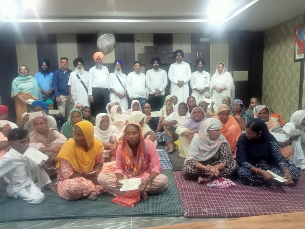 ਲੋੜਵੰਦ ਪਰਿਵਾਰਾਂ ਨੂੰ ਸਹਾਇਤਾ ਰਾਸ਼ੀ ਦੇ ਚੈਕ ਵੰਡਦੇ ਹੋਏ ਅਤੇ ਅੰਗਹੀਣ ਵਿਅਕਤੀ ਨੂੰ ਵਹੀਲ ਚੈਅਰ ਦਿੰਦੇ ਹੋਏ ਸਰਬੱਤ ਦਾ ਭਲਾ ਟਰੱਸਟ ਦੀ ਟੀਮ