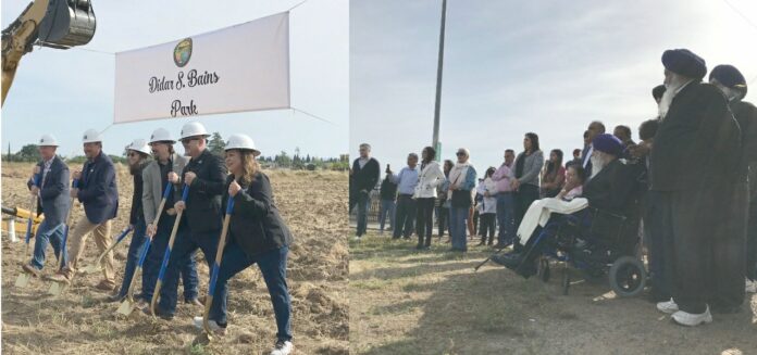 ਕੈਪਸ਼ਨ: ਕੈਲੀਫੋਰਨੀਆ ਦੇ ਊਘੇ ਧਨਾਡ ਸਿੱਖ ਸਃ ਦੀਦਾਰ ਸਿੰਘ ਬੈਂਸ ਦੇ ਨਾਮ ਉੱਤੇ ਬਣ ਰਹੇ ਪਾਰਕ ਦਾ ਉਦਘਾਟਨ ਕਰ ਰਹੇ ਸਥਾਨਕ ਅਧਿਕਾਰੀ ਤੇ ਦਿਦਾਰ ਸਿੰਘ ਬੈਂਸ ਤੇ ਪਰਿਵਾਰ ।
