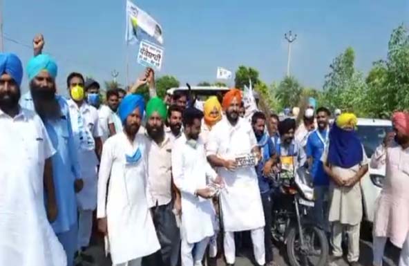 ਆਮ ਆਦਮੀ ਪਾਰਟੀ ਦੇ ਲੀਡਰਾਂ ਤੇ ਵਰਕਰਾਂ ਦੁਆਰਾ 100 ਕਿਲੋਮੀਟਰ ਦਾ ਟਰੈਕਟਰ ਰੋਸ਼ ਮਾਰਚ ।