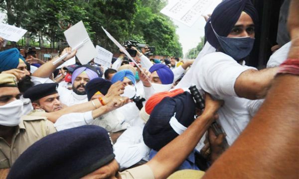 ਚੰਡੀਗੜ੍ਹ : ਪੰਜਾਬ ‘ਚ ਜ਼ਹਿਰੀਲੀ ਸ਼ਰਾਬ ਨਾਲ ਹੋਈਆਂ ਮੌਤਾਂ ਦੇ ਮਾਮਲੇ ਤੋਂ ਬਾਅਦ ਸ਼੍ਰੋਮਣੀ ਅਕਾਲੀ ਦਲ ਨੇ ਕੈਪਟਨ ਸਰਕਾਰ ਖ਼ਿਲਾਫ਼ ਮੋਰਚਾ ਖੋਲ੍ਹ ਦਿੱਤਾ ਹੈ। ਅਕਾਲੀ ਆਗੂਆਂ ਨੇ ਕੈਪਟਨ ਸਰਕਾਰ ਦੀ ਬਰਖ਼ਾਸਤਗੀ ਦੀ ਮੰਗ ਸਬੰਧੀ ਸੋਮਵਾਰ ਨੂੰ ਚੌਥੇ ਦਿਨ ਵੀ ਪਾਰਟੀ ਦੇ ਸੀਨੀਅਰ ਆਗੂ ਤੇ ਸਾਬਕਾ ਮੰਤਰੀ ਸ਼ਰਨਜੀਤ ਸਿੰਘ ਢਿੱਲੋਂ ਦੀ ਅਗਵਾਈ ‘ਚ ਪੰਜਾਬ ਰਾਜ ਭਵਨ ਵੱਲ ਰੋਸ ਮਾਰਚ ਕੱਢਿਆ। ਅਕਾਲੀ ਆਗੂ ਕੈਪਟਨ ਸਰਕਾਰ ਦੀ ਬਰਖ਼ਾਸਤਗੀ ਦੀ ਮੰਗ ਕਰ ਰਹੇ ਸਨ। ਇਸ ਦੌਰਾਨ ਰਾਜ ਭਵਨ ਵੱਲ ਵਧ ਰਹੇ ਅਕਾਲੀ ਆਗੂਆਂ ਨੂੰ ਪੁਲਿਸ ਨੇ ਹਿਰਾਸਤ ‘ਚ ਲੈ ਲਿਆ। ਇਸ ਤੋਂ ਪਹਿਲਾਂ ਐਤਵਾਰ ਨੂੰ ਅਕਾਲੀ ਆਗੂਆਂ ਨੇ ਹੀਰ ਸਿੰਘ ਗਾਬੜੀਆ ਦੀ ਅਗਵਾਈ ‘ਚ ਰੋਸ ਮਾਰਚ ਕੱਢਿਆ ਸੀ। ਸੋਮਵਾਰ ਨੂੰ ਵੀ ਅਕਾਲੀ ਆਗੂਆਂ ਨੇ ਕੈਪਟਨ ਸਰਕਾਰ ਨੂੰ ਜ਼ਹਿਰੀਲੀ ਸ਼ਰਾਬ ਨਾਲ ਹੋਈਆਂ ਮੌਤਾਂ ਲਈ ਜ਼ਿੰਮੇਵਾਰ ਠਹਿਰਾਉਂਦੇ ਹੋਏ ਉਸ ਨੂੰ ਬਰਖ਼ਾਸਤ ਕਰਨ ਦੀ ਮੰਗ ਸਬੰਧੀ ਰਾਜ ਭਵਨ ਤਕ ਰੋਸ ਮਾਰਚ ਕੀਤਾ। ਚੰਡੀਗੜ੍ਹ ਪੁਲਿਸ ਨੇ ਅਕਾਲੀ ਆਗੂਆਂ ਨੇ ਰਾਜ ਭਵਨ ਪਹੁੰਚਣ ਤੋਂ ਪਹਿਲੀਂ ਆਗੂਆਂ ਨੂੰ ਹਿਰਾਸਤ ‘ਚ ਲੈ ਲਿਆ। ਸੋਮਵਾਰ ਨੂੰ ਮਾਰਚ ਦੀ ਅਗਵਾਈ ਕਰਦਿਆਂ ਸਾਬਕਾ ਮੰਤਰੀ ਸ਼ਰਨਜੀਤ ਸਿੰਘ ਢਿੱਲੋਂ ਨੇ ਦੋਸ਼ ਲਾਇਆ ਕਿ ਪੰਜਾਬ ‘ਚ ਸ਼ਰਾਬ ਤੇ ਰੇਤ ਮਾਫ਼ੀਆ ਦਾ ਬੋਲਬਾਲਾ ਹੈ। ਸੂਬਾ ਸਰਕਾਰ ਹਰੇਕ ਮੋਰਚੇ ‘ਤੇ ਅਸਫ਼ਲ ਸਾਬਿਤ ਹੋ ਰਹੀ ਹੈ।