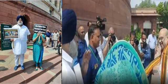 ਚੰਡੀਗੜ੍ਹ, 20 ਜੁਲਾਈ-ਸ਼੍ਰੋਮਣੀ ਅਕਾਲੀ ਦਲ ਦੇ ਪ੍ਰਧਾਨ ਤੇ ਸੰਸਦ ਮੈਂਬਰ ਸੁਖਬੀਰ ਸਿੰਘ ਬਾਦਲ ਅਤੇ ਸਾਬਕਾ ਕੇਂਦਰੀ ਮੰਤਰੀ ਹਰਸਿਮਰਤ ਕੌਰ ਬਾਦਲ ਵਲੋਂ ਅੱਜ ਬੰਦੀ ਸਿੰਘਾਂ ਦੀ ਰਿਹਾਈ ਦੀ ਮੰਗ ਨੂੰ ਲੈ ਕੇ ਸੰਸਦ ਦੇ ਬਾਹਰ ਪ੍ਰਦਰਸ਼ਨ ਕਰਦਿਆਂ ਕੇਂਦਰੀ ਗ੍ਰਹਿ ਮੰਤਰੀ ਅਮਿਤ ਸ਼ਾਹ, ਨਿਤਿਨ ਗਡਕਰੀ ਅਤੇ ਰਾਜਨਾਥ ਸਿੰਘ ਨੂੰ ਤਖ਼ਤੀਆਂ ਦਿਖਾਈਆਂ ਗਈਆਂ ਤੇ ਮੰਗ ਕੀਤੀ ਕਿ ਬੰਦੀ ਸਿੰਘਾਂ ਨੂੰ ਤੁਰੰਤ ਰਿਹਾਅ ਕੀਤਾ ਜਾਵੇ।