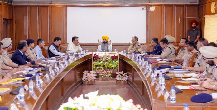 ਪੁਲਿਸ ਵਿਭਾਗ ਦੀ ਉੱਚ ਪੱਧਰੀ ਮੀਟਿੰਗ ਦੀ ਪ੍ਰਧਾਨਗੀ ਕਰਦਿਆਂ ਭਗਵੰਤ ਮਾਨ ਨੇ ਸੰਗਠਿਤ ਅਪਰਾਧ ਦੇ ਖਾਤਮੇ ਦੀ ਲੋੜ ‘ਤੇ ਜ਼ੋਰ ਦਿੰਦਿਆਂ ਕਿਹਾ ਕਿ ਪੁਲਿਸ ਤੰਤਰ ਵਿੱਚ ਲੋਕਾਂ ਦਾ ਭਰੋਸਾ ਬਹਾਲ ਕਰਨ ਲਈ ਸੂਬੇ ਵਿੱਚ ਅਮਨ-ਕਾਨੂੰਨ ਦੀ ਵਿਵਸਥਾ ਨੂੰ ਯਕੀਨੀ ਬਣਾਉਣਾ ਮੁੱਖ ਤਰਜੀਹ ਹੈ। ਉਨ੍ਹਾਂ ਨੇ ਨਸ਼ਿਆਂ ਦੇ ਵਪਾਰ ਅਤੇ ਕਬੱਡੀ ਜਗਤ ਵਿੱਚ ਪਹਿਲਾਂ ਹੀ ਆਪਣੇ ਪੈਰ ਪਾਸਾਰ ਚੁੱਕੇ ਇਸ ਗਠਜੋੜ ਨੂੰ ਤੋੜਨ ਲਈ ਪੁਲਿਸ ਫੋਰਸ ਨੂੰ ਫੰਡਾਂ ਤੋਂ ਇਲਾਵਾ ਲੋੜੀਂਦੇ ਸਟਾਫ਼, ਨਵੀਨਤਮ ਸਾਜ਼ੋ-ਸਾਮਾਨ ਅਤੇ ਸੂਚਨਾ ਤਕਨਾਲੋਜੀ ਮੁਹੱਈਆ ਕਰਵਾਉਣ ਦਾ ਭਰੋਸਾ ਦਿੱਤਾ।