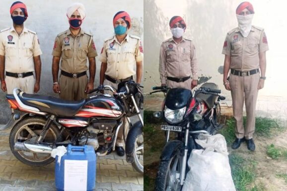 ਇਸੇ ਤਰਾ ਆਬਕਾਰੀ ਐਕਟ ਤਹਿਤ ਕਾਰਵਾਈ ਕਰਦੇ ਹੋੋਏ ਥਾਣਾ ਸਦਰ ਬੁਢਲਾਡਾ ਦੀ ਪੁਲਿਸ ਪਾਰਟੀ ਨੇ ਸਵਰਨਦੀਪ ਸਿੰਘ ਉਰਫ ਬੱਬੀ ਪੁੱਤਰ ਜੀਤ ਸਿੰਘ ਵਾਸੀ ਕਿਸ਼ਨਗੜ ਫਰਮਾਹੀ ਨੂੰ ਮੋਟਰਸਾਈਕਲ ਡੀਲਕਸ ਨੰ: ਪੀਬੀ,31ਯੂ^6387 ਸਮੇਤ ਕਾਬੂ ਕਰਕੇ 24 ਬੋਤਲਾਂ ਸ਼ਰਾਬ ਠੇਕਾ ਦੇਸੀ ਮਾਰਕਾ ਅਸਲੀ ਨਿੰਬੂ (ਹਰਿਆਣਾ) ਬਰਾਮਦ ਕੀਤੀ। ਥਾਣਾ ਬਰੇਟਾ ਦੀ ਪੁਲਿਸ ਪਾਰਟੀ ਨੇ ਅਜੈ ਕੁਮਾਰ ਅਤੇ ਪਿੰਕੂ ਰਾਮ ਪੁੱਤਰਾਨ ਬਚਨ ਸਿੰਘ ਵਾਸੀਅਨ ਲਾਂਬਾ (ਹਰਿਆਣਾ) ਨੂੰ ਮੋਟਰਸਾਈਕਲ ਹੀਰੋੋ ਐਚ,ਐਫ,ਡੀਲਕਸ ਬਿਨਾ ਨੰਬਰੀ ਸਮੇਤ ਕਾਬੂ ਕਰਕੇ 26 ਬੋਤਲਾਂ ਸ਼ਰਾਬ ਨਜਾਇਜ ਬਰਾਮਦ ਕੀਤੀ। ਥਾਣਾ ਸਿਟੀ^2 ਮਾਨਸਾ ਦੀ ਪੁਲਿਸ ਪਾਰਟੀ ਨੇ ਅਰਸ਼ ਕੁਮਾਰ ਪੁੱਤਰ ਅਵਤਾਰ ਸਿੰਘ ਵਾਸੀ ਮਾਨਸਾ ਨੂੰ ਕਾਬੂ ਕਰਕੇ 24 ਬੋਤਲਾਂ ਸ਼ਰਾਬ ਠੇਕਾ ਦੇਸੀ ਮਾਰਕਾ ਸ਼ਾਹੀ (ਹਰਿਆਣਾ) ਬਰਾਮਦ ਕੀਤੀ। ਥਾਣਾ ਸਦਰ ਮਾਨਸਾ ਦੀ ਪੁਲਿਸ ਪਾਰਟੀ ਨੇ ਮਨਦੀਪ ਸਿੰਘ ਉਰਫ ਕਾਕੂ ਪੁੱਤਰ ਲੀਲਾ ਸਿੰਘ ਵਾਸੀ ਘਰਾਂਗਣਾ ਨੂੰ ਕਾਬੂ ਕਰਕੇ 10 ਬੋਤਲਾਂ ਸ਼ਰਾਬ ਨਜਾਇਜ ਬਰਾਮਦ ਕੀਤੀ। ਥਾਣਾ ਸਿਟੀ^2 ਮਾਨਸਾ ਦੀ ਪੁਲਿਸ ਪਾਰਟੀ ਨੇ ਮੰਗਾਂ ਸਿੰਘ ਪੁੱਤਰ ਅਮਰਜੀਤ ਸਿੰਘ ਵਾਸੀ ਮਾਨਸਾ ਨੂੰ ਕਾਬੂ ਕਰਕੇ 10 ਬੋਤਲਾਂ ਸ਼ਰਾਬ ਠੇਕਾ ਦੇਸੀ ਮਾਰਕਾ ਹਰਿਆਣਾ ਬਰਾਮਦ ਕੀਤੀ। ਥਾਣਾ ਜੌੌੜਕੀਆਂ ਦੀ ਪੁਲਿਸ ਪਾਰਟੀ ਨੇ ਬਾਵਾ ਸਿੰਘ ਪੁੱਤਰ ਭਾਗ ਸਿੰਘ ਵਾਸੀ ਰਾਮਾਨੰਦੀ ਨੂੰ ਕਾਬੂ ਕਰਕੇ 25 ਲੀਟਰ ਲਾਹਣ ਬਰਾਮਦ ਕੀਤੀ। ਐਸ,ਐਸ,ਪੀ,ਮਾਨਸਾ ਡਾ, ਨਰਿੰਦਰ ਭਾਰਗਵ, ਆਈ,ਪੀ,ਐਸ, ਵੱਲੋੋਂ ਦੱਸਿਆ ਗਿਆ ਕਿ ਨਸ਼ਿਆਂ ਅਤੇ ਮਾੜੇ ਅਨਸਰਾ ਵਿਰੁੱਧ ਵਿੱਢੀ ਮੁਹਿੰਮ ਨੂੰ ਅੱਗੇ ਲਈ ਵੀ ਇਸੇ ਤਰਾ ਹੀ ਜਾਰੀ ਰੱਖਿਆ ਜਾ ਰਿਹਾ ਹੈ।