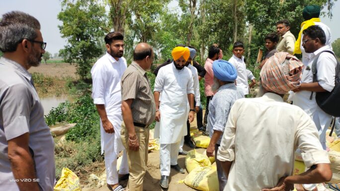S.D.M. ਸਾਬ੍ਹ ਅਤੇ ਹੋਰ ਅਫਸਰਾਂ ਨੂੰ ਬੁਲਾਕੇ ਮੌਕੇ ਤੇ ਜਾਇਜ਼ਾ ਲਿਆ ਅਤੇ ਤੁਰੰਤ ਬਨ ਦਾ ਕੰਮ ਸ਼ੁਰੂ ਕਰਵਾਇਆ ਤਾਂ ਜੋ ਨੇੜਲੇ ਪਿੰਡ ਵਾਸੀਆਂ ਨੂੰ ਹੋਣ ਵਾਲੇ ਨੁਕਸਾਨ ਤੋਂ ਬਚਾਇਆ ਜਾ ਸਕੇ।ਲੋਕਾਂ ਦੀ ਸਮੱਸਿਆ ਨੂੰ ਆਪਣੀ ਸਮੱਸਿਆ ਸਮਝਦੇ ਹੋਏ ਪਹੁੰਚੇ ਵਿਧਾਇਕ ਅਮ੍ਰਿਤਪਾਲ ਸੁਖਾਨੰਦ ਨੇ ਕਿਹਾ ਮੈਨੂੰ ਮੇਰੇ ਹਲਕੇ ਦੇ ਲੋਕਾਂ ਨੇ ਵਿਧਾਇਕ ਬਣਾਇਆ ਮੈਂ ਹਮੇਸ਼ਾ ਉਹਨਾਂ ਦੇ ਦੁੱਖ ਸੁੱਖ ਵਿੱਚ ਖੜਾ ਰਹਾਂਗਾ।