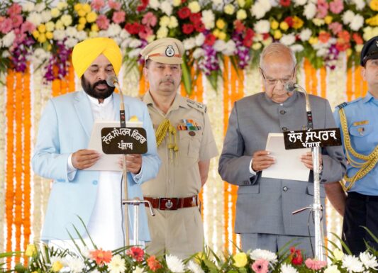 ਪੰਜਾਬ ਦੇ ਰਾਜਪਾਲ ਬਨਵਾਰੀਲਾਲ ਪੁਰੋਹਿਤ ਨੇ ਭਗਵੰਤ ਮਾਨ ਨੂੰ ਅਹੁਦੇ ਦੀ ਸਹੁੰ ਚੁਕਾਈ