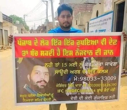 ਫਿਰੋਜਪੁਰ,11 ਮਈ (ਹਰਜਿੰਦਰ ਸਿੰਘ ਕਤਨਾ)- ਸਾਊਦੀ ਅਰਬ ‘ਚ ਮੌਤ ਦੀ ਸਜ਼ਾ ਭੁਗਤ ਰਹੇ ਮੁਕਤਸਰ ਜ਼ਿਲ੍ਹੇ ਦੇ ਪਿੰਡ ਮੱਲਣ ਦੇ ਬਲਵਿੰਦਰ ਸਿੰਘ ਪੁੱਤਰ ਕਰਮ ਸਿੰਘ ਦੀ ਜਾਨ ਬਚਣ ਦੀ ਆਸ ਅੱਜ ਉਸ ਵੇਲੇ ਬੱਝੀ ਜਦੋਂ ਕੌਮਾਂਤਰੀ ਪੱਧਰ ਦੇ ਨਾਮਵਰ ਸਮਾਜ ਸੇਵੀ ਅਤੇ ਸਰਬੱਤ ਦਾ ਭਲਾ ਚੈਰੀਟੇਬਲ ਟਰੱਸਟ ਦੇ ਬਾਨੀ ਡਾ.ਐੱਸ.ਪੀ. ਸਿੰਘ ਓਬਰਾਏ ਵੱਲੋਂ ਉਸ ਦੀ ਬਲੱਡ ਮਨੀ ‘ਚੋੰ ਘੱਟਦੇ ਵੀਹ ਲੱਖ ਰੁਪਏ ਦੇਣ ਦਾ ਐਲਾਨ ਕੀਤਾ ਗਿਆ।