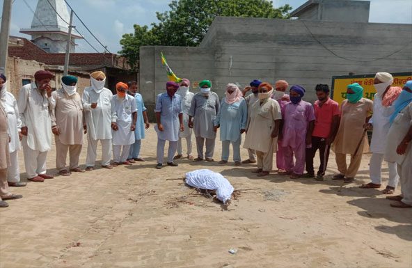 ਭਾਰਤੀ ਕਿਸਾਨ ਯੂਨੀਅਨ ਏਕਤਾ (ਉਗਰਾਹਾਂ) ਵੱਲੋਂ ਪੰਜ ਰੋਜ਼ਾ ਰੋਸ ਧਰਨੇ ਦੇ ਅਖੀਰਲੇ ਦਿਨ ਫੂਕੀ ਗਈ ਅਰਥੀ ।