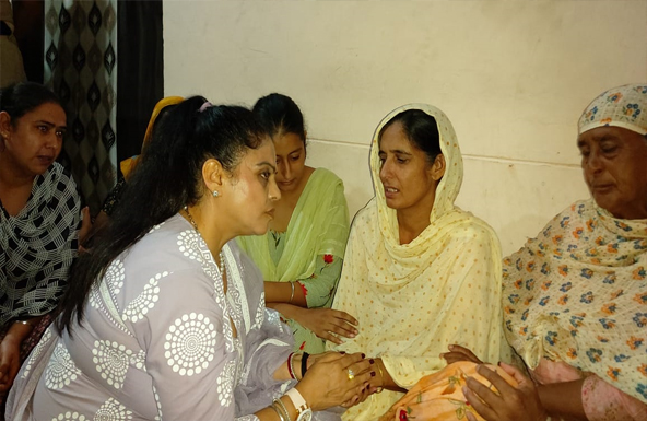 ਬਰਨਾਲਾ (ਕਰਨਪ੍ਰੀਤ ਧੰਦਰਾਲ) : ਮਹਿਲਾ ਕਮਿਸ਼ਨ ਦੀ ਚੇਅਰਪਰਸਨ ਮਨੀਸ਼ਾ ਗੁਲਾਟੀ ਵੱਲੋਂ ਅੱਜ ਬਰਨਾਲਾ ਧਨੌਲਾ ਨੇੜੇ ਕੋਠੇ ਗੋਬਿੰਦਪੁਰਾ ਵਿਖੇ ਪੁੱਜ ਕੇ ਲਵਪ੍ਰੀਤ (23 ਸਾਲ) ਮਾਮਲੇ ਵਿਚ ਮਿ੍ਰਤਕ ਦੀ ਮਾਤਾ ਅਤੇ ਭੈਣ ਸਮੇਤ ਹੋਰ ਪਰਿਵਾਰਕ ਮੈਂਬਰਾਂ ਨਾਲ ਮੁਲਾਕਾਤ ਕੀਤੀ ਗਈ ਅਤੇ ਲਵਪ੍ਰੀਤ ਦੀ ਮੌਤ ’ਤੇ ਡੂੰਘਾ ਦੁੱਖ ਪ੍ਰਗਟਾਇਆ ਗਿਆ।
