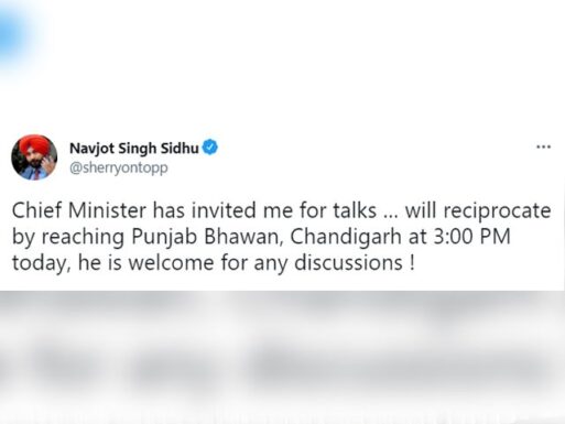 ਪਟਿਆਲਾ,30 ਸਤੰਬਰ – ਨਵਜੋਤ ਸਿੰਘ ਸਿੱਧੂ ਨੇ ਟਵੀਟ ਕਰਕੇ ਕਿਹਾ ਹੈ ਕਿ ਮੁੱਖ ਮੰਤਰੀ ਨੇ ਮੈਨੂੰ ਗੱਲਬਾਤ ਲਈ ਸੱਦਾ ਦਿੱਤਾ ਹੈ | ਉਨ੍ਹਾਂ ਦਾ ਕਹਿਣਾ ਹੈ ਕਿ ਅੱਜ ਦੁਪਹਿਰ 3:00 ਵਜੇ ਪੰਜਾਬ ਭਵਨ, ਚੰਡੀਗੜ੍ਹ ਪਹੁੰਚ ਕੇ ਉਨ੍ਹਾਂ ਨਾਲ ਹਰ ਇਕ ਗੱਲ ‘ਤੇ ਵਿਚਾਰ ਵਟਾਂਦਰੇ ਕੀਤਾ ਜਾਵੇਗਾ |