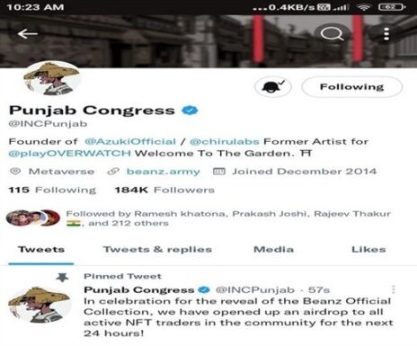 ਪੰਜਾਬ ਕਾਂਗਰਸ ਆਪਣੇ ਟਵਿੱਟਰ ਹੈਂਡਲ ‘ਤੇ ਸਿਆਸੀ ਸਰਗਰਮੀਆਂ ਨਾਲ ਸਬੰਧਤ ਆਪਣੀਆਂ ਗਤੀਵਿਧੀਆਂ ਅਤੇ ਬਿਆਨ ਸ਼ੇਅਰ ਕਰਦੀ ਹੈ। ਪਰ, ਅੱਜ ਸਵੇਰੇ ਅਚਾਨਕ ਉਨ੍ਹਾਂ ‘ਤੇ ਸਿਆਸੀ ਬਿਆਨਾਂ ਤੋਂ ਇਲਾਵਾ ਕੋਈ ਹੋਰ ਟਵੀਟ ਹੋ ਗਿਆ। ਪਾਰਟੀ ਦਾ ਟਵਿੱਟਰ ਹੈਂਡਲ ਹੈਕ ਹੋਣ ਦੀ ਖ਼ਬਰ ਨੇ ਪੰਜਾਬ ਕਾਂਗਰਸ ਦੇ ਸੂਬਾ ਦਫ਼ਤਰ ‘ਚ ਹਲਚਲ ਮਚਾ ਦਿੱਤੀ ਅਤੇ ਪਾਰਟੀ ਆਗੂਆਂ ਵਿੱਚ ਹਾਹਾਕਾਰ ਮੱਚ ਗਈ। ਮਾਹਿਰਾਂ ਨੇ ਤੁਰੰਤ ਇਸ ‘ਤੇ ਕੰਮ ਸ਼ੁਰੂ ਕਰ ਦਿੱਤਾ।