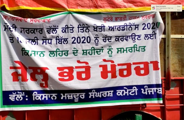 ਫਿਰੋਜ਼ਪੁਰ (ਹਰਪ੍ਰੀਤ ਸਿੰਘ) : ਕੇਂਦਰ ਦੀ ਮੋਦੀ ਸਰਕਾਰ ਵੱਲੋਂ ਲਿਆਂਦੇ ਕਿਸਾਨ ਮਾਰੂ ਤਿੰਨੇ ਖੇਤੀ ਆਰਡੀਨੈੱਸ ਜਿਵੇਂ ਜ਼ਰੂਰੀ ਵਸਤਾਂ ਸੋਧ ਆਰਡੀਨੈਂਸ, ਕਿਸਾਨੀ ਉਪਜ ਵਣਜ ਵਪਾਰ ਆਰਡੀਨੈਂਸ, ਕੀਮਤ ਗਾਰੰਟੀ ਖੇਤੀ ਸੇਵਾਵਾਂ ਆਰਡੀਨੈਂਸ 2020 ਜਿਹੇ ਕਾਨੂੰਨਾਂ ਦੇ ਖਰੜਿਆਂ ਤੇ ਬਿਜਲੀ ਸੋਧ ਬਿੱਲ 202 ਨੂੰ ਰੱਦ ਕਰਵਾਉਣ ਲਈ ਕਿਸਾਨ ਮਜ਼ਦੂਰ ਸੰਘਰਸ਼ ਕਮੇਟੀ ਪੰਜਾਬ ਦੀ ਅਗਵਾਈ ਹੇਠ ਸੈਂਕੜੇ ਕਿਸਾਨਾਂ ਮਜ਼ਦੂਰਾਂ ਤੇ ਬੀਬੀਆਂ ਵੱਲੋਂ ਲਾਇਆ ਜੇਲ੍ਹ ਭਰੋ ਮੋਰਚਾ ਅੱਜ ਚੌਥੇ ਦਿਨ ਵਿੱਚ ਸ਼ਾਮਲ ਹੋ ਗਿਆ ਤੇ 51 ਦੇ ਜਥੇ ਨੂੰ ਗ੍ਰਿਫ਼ਤਾਰੀ ਲਈ ਪੇਸ਼ ਕੀਤਾ । ਕਿਸਾਨ ਆਗੂਆਂ ਐਲਾਨ ਕੀਤਾ ਕਿ ਜੇਕਰ ਅੱਜ ਪ੍ਰਸ਼ਾਸਨ ਵੱਲੋਂ ਗ੍ਰਿਫ਼ਤਾਰੀ ਨਾ ਕੀਤੀ ਤਾਂ 11 ਸਤੰਬਰ ਨੂੰ ਮੋਰਚਾ ਫ਼ਿਰੋਜ਼ਪੁਰ ਦੀ ਜੇਲ੍ਹ ਦੇ ਅੱਗੇ ਲਾਇਆ ਜਾਵੇਗਾ ਅਤੇ ਵੱਡੀ ਗਿਣਤੀ ਵਿੱਚ ਕਿਸਾਨ ਆਪਣੀਆਂ ਗ੍ਰਿਫਤਾਰੀਆਂ ਦੇਣਗੇ । ਇਸ ਮੌਕੇ ਮੋਰਚੇ ਨੂੰ ਸੰਬੋਧਨ ਕਰਦਿਆਂ ਸੂਬਾ ਮੀਤ ਪ੍ਰਧਾਨ ਜਸਬੀਰ ਸਿੰਘ ਪਿੱਦੀ, ਜ਼ਿਲ੍ਹਾ ਪ੍ਰਧਾਨ ਇੰਦਰਜੀਤ ਸਿੰਘ ਬਾਠ, ਰਛਪਾਲ ਸਿੰਘ ਗੱਟਾ ਬਾਦਸ਼ਾਹ ਤੇ ਬਲਵਿੰਦਰ ਸਿੰਘ ਲੋਹੁਕਾਂ ਨੇ ਕਿਹਾ ਕਿ ਇਨ੍ਹਾਂ ਆਰਡੀਨੈਂਸ ਦੇ ਲਾਗੂ ਹੋਣ ਨਾਲ ਕਿਸਾਨੀ ਕਿੱਤਾ ਬੁਰੀ ਤਰ੍ਹਾਂ ਤਬਾਹ ਹੋ ਜਾਵੇਗਾ । ਜਿਵੇਂ 2006 ਵਿੱਚ ਬਿਹਾਰ ਵਿੱਚ ਉਕਤ ਮਾਡਲ ਲਾਗੂ ਕੀਤਾ ਗਿਆ ਸੀ ਤੇ ਅੱਜ ਬਿਹਾਰ ਦੇ ਕਿਸਾਨਾਂ ਦੀ ਹਾਲਤ ਬਦ ਤੋਂ ਬਦਤਰ ਹੋ ਗਈ ਹੈ । ਇਸ ਖੁੱਲ੍ਹੀ ਮੰਡੀ ਦਾ ਮਾਡਲ ਪਹਿਲਾਂ ਹੀ ਯੂਰਪ ਤੇ ਅਮਰੀਕਾ ਜਿਹੇ ਦੇਸ਼ਾਂ ਵਿੱਚ ਫੇਲ ਹੋ ਚੁੱਕਾ ਹੈ । ਆਰਡੀਨੈਂਸ ਦੇ ਲਾਗੂ ਹੋਣ ਨਾਲ ਵਪਾਰੀ ਵਰਗ ਨੂੰ ਪੂਰੀ ਤਰ੍ਹਾਂ ਖੁੱਲ੍ਹ ਦੇ ਦਿੱਤੀ ਜਾਵੇਗੀ ਤੇ ਕਾਰਪੋਰੇਟ ਜਗਤ ਦੇ ਵਪਾਰੀ ਆਪਣੀ ਮਨਮਰਜ਼ੀ ਨਾਲ ਕੌਡੀਆਂ ਦੇ ਭਾਅ ਫ਼ਸਲ ਖਰੀਦਣਗੇ ਤੇ ਕਿਸਾਨਾਂ ਦੀ ਵੱਡੇ ਪੱਧਰ ਲੁੱਟ ਕਰਨਗੇ । ਇਸੇ ਤਰ੍ਹਾਂ ਬਿਜਲੀ ਸੋਧ ਬਿੱਲ 2020 ਦੇ ਕਾਲੇ ਕਾਨੂੰਨਾਂ ਤਹਿਤ ਬਿਜਲੀ ਦਾ ਪੂਰੀ ਤਰ੍ਹਾਂ ਨਿੱਜੀਕਰਨ ਹੋ ਜਾਵੇਗਾ ਤੇ ਕਿਸਾਨਾਂ ਨੂੰ ਬਿਜਲੀ ਮੋਟਰਾਂ ਤੇ ਮਿਲਦੀ ਨਿਗੂਣੀ ਬਿਜਲੀ ਸਬਸਿਡੀ ਬੰਦ ਕਰਕੇ 6 ਹਜ਼ਾਰ ਰੁਪਏ ਪ੍ਰਤੀ ਮਹੀਨਾ ਬਿੱਲ ਲਗਾਇਆ ਜਾਵੇਗਾ ਤੇ ਗਰੀਬਾਂ ਦੀ 200 ਯੂਨਿਟ ਮੁਫ਼ਤ ਬਿਜਲੀ ਵੀ ਬੰਦ ਕਰ ਦਿੱਤੀ ਜਾਵੇਗੀ । ਇਨ੍ਹਾਂ ਕਾਲੇ ਕਾਨੂੰਨਾਂ ਦੇ ਲਾਗੂ ਹੋਣ ਨਾਲ ਕਿਸਾਨਾਂ ਦੇ ਨਾਲ-ਨਾਲ ਹਰ ਵਰਗ ਬੁਰੀ ਤਰ੍ਹਾਂ ਪ੍ਰਭਾਵਿਤ ਹੋ ਜਾਵੇਗਾ । ਕਿਸਾਨ ਆਗੂਆਂ ਨੇ ਅੱਗੇ ਕਿਹਾ ਕਿ ਇਹ ਆਰਡੀਨੈਂਸ ਕਿਸੇ ਵੀ ਕੀਮਤ ਵਿੱਚ ਲਾਗੂ ਨਹੀਂ ਹੋਣ ਦਿੱਤੇ ਜਾਣਗੇ,ਚਾਹੇ ਸਾਨੂੰ ਆਪਣੀਆਂ ਜਾਨਾਂ ਦੀਆਂ ਕੁਰਬਾਨੀਆਂ ਕਿਉਂ ਨਾ ਦੇਣੀਆਂ ਪੈਣ । ਇਸ ਮੌਕੇ ਅਮਨਦੀਪ ਸਿੰਘ ਕੱਚਰਭੰਨ, ਗੁਰਮੇਲ ਸਿੰਘ ਫੱਤੇ ਵਾਲਾ, ਬਲਜਿੰਦਰ ਸਿੰਘ ਤਲਵੰਡੀ ਹਰਫੂਲ ਸਿੰਘ, ਬਚਿੱਤਰ ਸਿੰਘ ਕੁਤਬਦੀਨ, ਰਣਜੀਤ ਸਿੰਘ ਖੱਚਰ ਵਾਲਾ, ਮਹਿਤਾਬ ਸਿੰਘ ਕੱਚਰਭੰਨ, ਮੱਸਾ ਸਿੰਘ ਆਸਿਫਵਾਲਾ,ਹਰਨੇਕ ਸਿੰਘ ਕਮਾਲਾ ਬੋਤਲਾਂ, ਰੰਗਾ ਸਿੰਘ ਭੁੱਲਰ, ਚਰਨਜੀਤ ਸਿੰਘ, ਸੁਖਦੇਵ ਸਿੰਘ,ਰਸਾਲ ਸਿੰਘ ਢੋਲੇਵਾਲਾ, ਸੁਖਵੰਤ ਸਿੰਘ ਲੋਹੁਕਾ, ਚਮਕੌਰ ਸਿੰਘ,ਚੰਦ ਸਿੰਘ, ਅਮਰੀਕ ਸਿੰਘ ਆਦਿ ਆਗੂਆਂ ਨੇ ਸੰਬੋਧਨ ਕੀਤਾ ।