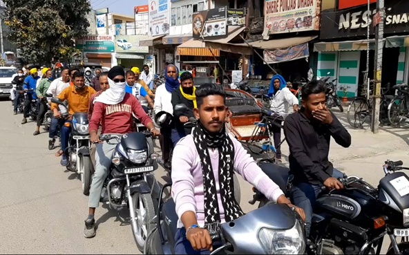 ਹੁਸ਼ਿਆਰਪੁਰ (ਦਲਜੀਤ ਅਜਨੋਹਾ) : ਨਵੇਂ ਲੇਬਰ ਅਤੇ ਖੇਤੀ ਕਾਨੂੰਨਾਂ ਨੂੰ ਰੱਦ ਕਰਨ ਦੀ ਮੰਗ ਲਈ ਠੇਕਾ ਮੁਲਾਜਮ ਸੰਘਰਸ਼ ਮੋਰਚਾ ਪੰਜਾਬ ਵਲੋਂ ਹੋਸ਼ਿਆਰਪੁਰ ਦੇ ਵਰਕਰਾਂ ਵਲੋਂ ਢੋਲ ਮਾਰਚ ਕੱਢਿਆ ਗਿਆ। ਜਿਸ ਵਿਚ ਜਥੇਬੰਦੀ ਦੇ ਆਗੂਆਂ ਇੰਦਰਪ੍ਰੀਤ ਸਿੰਘ ਤੇ ਓਂਕਾਰ ਸਿੰਘ ਨੇ ਕਿਹਾ ਕਿ ਭਾਰਤ ਅਤੇ ਸੂਬਾ ਸਰਕਾਰਾਂ ਦੁਆਰਾ ਕਾਰਪੋਰੇਟਰਾਂ ਦੀ ਅੰਨ੍ਹੀ ਲੁੱਟ ਦਾ ਕੁਹਾੜਾ ਹੋਰ ਵਧਾਉਦੇ ਹੋਏ ਨਵੇ ਲੇਬਰ ਕਾਨੂੰਨ ਪਾਸ ਕੀਤੇ ਗਏ ਹਨ। ਹਾਕਮ ਸਰਕਾਰਾਂ ਵਲੋਂ ਨਵੇਂ ਕਿਰਤ ਕਾਨੂੰਨ ਅਪ੍ਰੈਲ 2021 ਤੋਂ ਲਾਗੂ ਕੀਤਾ ਜਾ ਰਿਹਾ ਹੈ। ਨਵੇਂ ਲੇਬਰ ਕਾਨੂੰਨ ਮੁਤਾਬਿਕ ਤਨਖਾਹ ਤਹਿ ਕਰਨ ਦੇ ਨਿਯਮ ਬਦਲ ਦਿੱਤੇ ਗਏ ਹਨ, ਜਿਸ 4628 ਰੁਪਏ ਪ੍ਰਤੀ ਮਹੀਨਾ ਤਨਖਾਹ ਅਤੇ 178 ਰੁਪਏ ਦਿਹਾੜੀ ਤੈਅ ਕੀਤੀ ਗਈ ਹੈ। ਇਸਦੇ ਨਾਲ ਹੀ 4 ਹਫਤਾਵਾਰੀ ਰੇਸਟਾਂ ਵਿਚ ਵੀ ਕੱਟ ਲਗਾ ਦਿੱਤਾ ਹੈ। ਤਬਦੀਲ ਕੀਤੇ ਗਏ ਲੇਬਰ ਕਾਨੂੰਨ ਮੁਤਾਬਿਕ ਗੈਰ ਜਥੇਬੰਦ ਖੇਤਰ ਦਾ ਘੇਰਾ ਵਧਾ ਕੇ ਦੁਗਣਾ ਕਰ ਦਿੱਤਾ ਹੈ। ਇਉ ਕਰੋੜਾਂ ਦੀ ਗਿਣਤੀ ਵਿਚ ਮਜਦੂਰਾਂ ਨੂੰ ਗੈਰ ਜੱਥੇਬੰਦਕ ਘੇਰੇ ਵਿਚ ਲਿਆ ਕੇ,ਨਵੇਂ ਲੇਬਰ ਕਾਨੂੰਨਾਂ ਵਿਚੋਂ ਲਾਭਾ ਤੋਂ ਵਾਂਝਾ ਹੀ ਨਹੀਂ ਕੀਤਾ ਸਗੋ ਸਅਨਤੀ ਮਾਲਕਾਂ ਨੂੰ ਇਨ੍ਹਾਂ ਦੀ ਪਹਿਲਾਂ ਦੇ ਮੁਕਾਬਲੇ ਹੋਰ ਤਿੱਖੀ ਤਰ੍ਹਾਂ ਰੱਤ ਨਿਚੋੜਨ ਦਾ ਅਧਿਕਾਰ ਦੇ ਦਿੱਤਾ ਗਿਆ ਹੈ। ਇਸੇ ਤਰ੍ਹਾਂ ਹੀ ਨਵੇਂ ਲੇਬਰ ਕਾਨੂੰਨ ਤਹਿਤ ਕਿਰਤੀਆਂ ਦੇ ਹੱਕ ਵਿਚ ਜਥੇਬੰਦੀ ਨੂੰ ਧਰਨੇ ਲਗਾਉਣ ’ਤੇ ਪਾਬੰਦੀਆਂ ਲਗਾ ਦਿੱਤੀਆਂ ਗਈਆਂ ਹਨ ਉਥੇ ਹੀ ਮਾਲਕਾਂ ਨੂੰ ਆਪਣੀ ਮਰਜੀ ਮੁਤਾਬਕ ਮਜਦੂਰਾਂ ਦੀਆਂ ਜੱਥੇਬੰਦੀਆਂ ਬਣਾ ਦਿੱਤੀਆਂ ਹਨ। ਉਨ੍ਹਾਂ ਕਿਹਾ ਕਿ ਨਵਾਂ ਕਿਰਤ ਕਾਨੂੰਨ ਜੋਕਿ ਮੋਦੀ ਸਰਕਾਰ ਵਲੋਂ ਲਿਆਂਦਾ ਗਿਆ ਹੈ ਕਿ ਉਹ ਲਾਗੂ ਹੋਣ ਨਾਲ ਕਿਰਤੀ ਮਜਦੂਰ ਦੇ ਪਹਿਲਾਂ ਤੋਂ ਮਿਲ ਰਹੇ ਅਧਿਕਾਰਾਂ ਤੋਂ ਵਾਂਝਾ ਕੀਤਾ ਗਿਆ ਹੈ। ਇਸ ਲਈ ਸਮੂਹ ਕਿਰਤੀ ਲੋਕਾਂ ਨੂੰ ਇਨ੍ਹਾਂ ਕਾਲੇ ਕਾਨੂੰਨਾਂ ਨੂੰ ਰੱਦ ਕਰਵਾਉਣ ਲਈ ਵੱਡੇ ਅਤੇ ਤਿੱਖੇ ਸੰਘਰਸ਼ ਕੀਤੇ ਜਾਣ। ਉਨ੍ਹਾਂ ਕਿਹਾ ਕਿ ਸਰਕਾਰੀ ਅਦਾਰਿਆਂ ਅਤੇ ਖੇਤੀ ਕਾਰੋਬਾਰ ਦਾ ਨਿੱਜੀਕਰਣ ਬੰਦ ਕਰਨ। ਖੇਤੀ ਅਤੇ ਲੇਬਰ ਕਾਨੂੰਨਾਂ ’ਚ ਕੀਤੀਆਂ ਤਬਾਹਕੁੰਨ ਤਬਦੀਲੀਆਂ ਰੱਦ ਕਰਨ। ਸਮੂਹ ਵਿਭਾਗਾਂ ’ਚ ਕੰਮ ਕਰਦੇ ਠੇਕਾ ਮੁਲਾਜਮਾਂ ਨੂੰ ਪਿੱਤਰੀ ਵਿਭਾਗਾਂ ’ਚ ਲਿਆ ਕੇ ਬਿਨਾ ਸ਼ਰਤ ਰੈਗੂਲਰ ਕਰਨ। ਠੇਕਾ ਕਾਮਿਆਂ ਦੀ 3-5-10 ਸਾਲਾਂ ਸੇਵਾ ਉਪਰੰਤ ਉਤਮ ਅਹੁਦੇ ਦਾ ਤਨਖਾਹ ਸਕੇਲ ਦੇਣ ਸਮੇਤ ਹੋਰਨਾਂ ਜਾਇਜ ਮੰਗਾਂ ਦਾ ਹੱਲ ਕਰਨ ਦੀ ਮੰਗ ਲਈ ਠੇਕਾ ਮੁਲਾਜਮ ਸੰਘਰਸ਼ ਮੋਰਚਾ ਪੰਜਾਬ ਵਲੋਂ 12 ਮਾਰਚ ਨੂੰ ਪੰਜਾਬ ਦੇ ਮੁੱਖ ਮੰਤਰੀ ਕੈਪਟਨ ਅਮਰਿੰਦਰ ਸਿੰਘ ਦੇ ਸ਼ਹਿਰ ਪਟਿਆਲਾ ਵਿਖੇ ਸੂਬਾ ਪੱਧਰੀ ਰੈਲੀ ਕੀਤੀ ਜਾ ਰਹੀ ਹੈ, ਜਿਸ ਵਿਚ ਸਮੂਹ ਠੇਕਾ ਮੁਲਾਜਮਾਂ, ਕਿਰਤੀਆਂ ਨੂੰ ਵੱਧ ਚੱੜ ਕੇ ਹਿੱਸਾ ਲੈਣ ਦੀ ਅਪੀਲ ਕੀਤੀ ਗਈ ਹੈ।