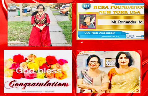 ਹੀਰਾ ਫ਼ਾਊਂਡੇਸ਼ਨ ਯੂ.ਐਸ.ਏ. ਵੱਲੋਂ ਰਮਿੰਦਰ ਰਮੀ ਨੂੰ ਐਮਬੈਸਡਰ ਆਫ਼ ਪੀਸ ਦੀ ਡਿਗਰੀ ਦੇ ਕੇ ਸਨਮਾਨਿਤ ਕੀਤਾ ਗਿਆ