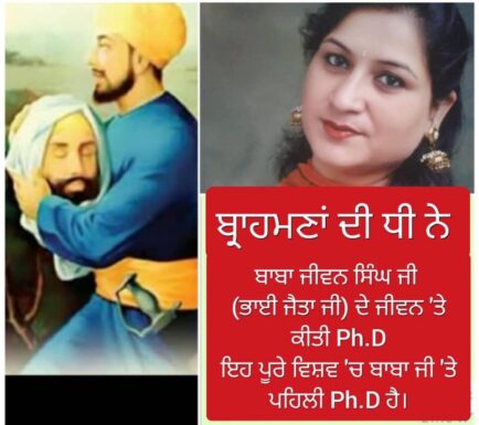 ਡਾ. ਰਾਗਿਨੀ ਸ਼ਰਮਾ ਭਾਵੇਂ ਕਿ ਇੱਕ ਬ੍ਰਾਹਮਣ ਪਰਿਵਾਰ ‘ਚੋਂ ਹੈ ਪਰ ਅੱਜ ਉਹ ਸਾਡੇ ਸਮਾਜ ਦਾ ਅੰਗ ਹੈ । ਸ. ਸੀਤਲ ਸਿੰਘ (Ex.MLA ਧਰਮਕੋਟ ) , ਉਹ ਉਨ੍ਹਾਂ ਦੇ ਬੇਟੇ ਰਾਜਵਿੰਦਰ ਸਿੰਘ ਦੀ ਧਰਮ-ਪਤਨੀ ਹੈ । ਜਿਸ ਨੇ ਪੰਜ ਸਾਲ ਬਹੁਤ ਹੀ ਸਖ਼ਤ ਮਿਹਨਤ ਕਰਕੇ ਜੋ ਸਕੰਲਪ ਲਿਆ ਸੀ ਉਹ ਨੇਪੜੇ ਚਾੜ੍ਹਿਆ। ਉਸ ਨੇ ਬਾਬਾ ਜੀਵਨ ਸਿੰਘ (ਭਾਈ ਜੈਤਾ ਜੀ) ‘ਤੇ PhD ਕੀਤੀ ਹੈ। ਇਹ ਸਾਡੇ ਲਈ ਬਹੁਤ ਹੀ ਮਾਣ ਵਾਲੀ ਗੱਲ ਹੈ ਕਿ ਬਾਬਾ ਜੀਵਨ ਸਿੰਘ ਜੀੱ ਦੇ ਜੀਵਨ ਤੇ ਇਹ ਪੰਜਾਬ ਵਿੱਚ ਹੀ ਨਹੀਂ ਪੂਰੇ ਵਿਸ਼ਵ ਦੀ ਪਹਿਲੀ PHD ਹੋਵੇਗੀ । ਇਸ ਬੇਟੀ ਨੇ ਦਿਨ ਰਾਤ ਬਹੁਤ ਖੋਜ ਕੀਤੀ ਜਿਸ ਨੂੰ ਪੂਰਾ ਕਰਨ ਲਈ ਕੌਮ ਦੇ ਬਹੁਤ ਸਾਰੇ ਵਿਦਵਾਨਾਂ ਜਿਨ੍ਹਾਂ ਵਿੱਚ ਸਵ. ਸ. ਦਲਵੀਰ ਸਿੰਘ ਜੀ (ਵਰਿਆਮ ਅਕੇਲਾ ਦੇ ਲਿਖਾਰੀ) , ਸ. ਨਿਰੰਜਨ ਸਿੰਘ ਜੀ ਆਰਫੀ ਸਾਹਿਬ , ਸ.ਜਸਵੰਤ ਸਿੰਘ (ਕਾਰ ਸੇਵਾ ਵਾਲੇ) ਤੇ ਮੈਂ (ਬੂਟਾ ਸਿੰਘ ਪਟਵਾਰੀ) ਨੇ ਵੀ ਅਮਰ ਸ਼ਹੀਦ ਬਾਬਾ ਜੀਵਨ ਸਿੰਘ ਜੀ ਦੇ ਜੀਵਨ ਨਾਲ ਸੰਬੰਧਤ ਪ੍ਰਾਇਮਰੀ ਸਰੋਤ ਆਪਣੀ ਨਿੱਜੀ ਲਾਇਬਰੇਰੀ ਵਿੱਚੋਂ ਦੇ ਕੇ ਸਹਿਯੋਗ ਦਿੱਤਾ । ਸਾਡੇ ਲਈ ਬਹੁਤ ਹੀ ਮਾਣ ਵਾਲੀ ਗੱਲ ਹੈ ਤੇ ਸਾਡਾ ਫਰਜ ਹੈ ਬੇਟੀ ਡਾ.ਰਾਗਿਨੀ ਸ਼ਰਮਾ ਨੂੰ ਵੱਧ ਤੋਂ ਵੱਧ ਪਿਆਰ ਤੇ ਸਤਿਕਾਰ ਦਈਏ , ਉਸਦਾ ਮਨੋਬਲ ਵਧਾਈਏ ਤਾਂ ਜੋ ਉਹ ਬਾਬਾ ਜੀ ਬਾਰੇ ਹੋਰ ਖੋਜ ਭਰਪੂਰ ਪੁਸਤਕਾਂ ਸਮਾਜ ਦੀ ਝੋਲੀ ਪਾਉਣ । ਬਾਬਾ ਜੀ ਕਿਰਪਾ ਕਰਨ ਹਮੇਸਾਂ ਚੜ੍ਹਦੀ ਕਲਾ ਬਖਸ਼ਣ ਜੀ । ਇਸ ਪੋਸਟ ਨੂੰ ਵੱਧ ਤੋਂ ਵੱਧ ਸ਼ੇਅਰ ਕਰੋ ਜੀ। ਬੂਟਾ ਸਿੰਘ ਪਟਵਾਰੀ 9815244571