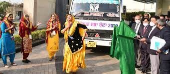 ਪੰਜਾਬੀ ਬੋਲੀਆਂ ਤੇ ਤਾੜੀਆਂ ਦੀ ਗੂੰਜ ਅਤੇ ਗਿੱਧਾ ਪ੍ਰਦਰਸ਼ਨ ਦੌਰਾਨ, ਮੁੱਖ ਚੋਣ ਕਮਿਸ਼ਨਰ (ਸੀ.ਈ.ਸੀ.) ਸ੍ਰੀ ਸੁਸੀਲ ਚੰਦਰ ਨੇ ਚੋਣ ਕਮਿਸ਼ਨਰ ਸ੍ਰੀ ਰਾਜੀਵ ਕੁਮਾਰ ਅਤੇ ਚੋਣ ਕਮਿਸ਼ਨਰ ਸ੍ਰੀ ਅਨੂਪ ਚੰਦਰ ਪਾਂਡੇ ਦੇ ਨਾਲ ਅੱਜ ਵੋਟਰ ਜਾਗਰੂਕਤਾ ਮੁਹਿੰਮ ਦੇ ਹਿੱਸੇ ਵਜੋਂ ਵੋਟਰ ਜਾਗਰੂਕਤਾ ਵੈਨ ਨੂੰ ਸੂਬੇ ਵਿੱਚ ਹਰੀ ਝੰਡੀ ਦੇ ਕੇ ਰਵਾਨਾ ਕੀਤਾ। ਇਸ ਮੌਕੇ ਪੰਜਾਬ ਦੇ ਮੁੱਖ ਚੋਣ ਅਫਸਰ (ਸੀ.ਈ.ਓ.) ਡਾ. ਐਸ. ਕਰੁਣਾ ਰਾਜੂ ਵੀ ਮੌਜੂਦ ਸਨ।