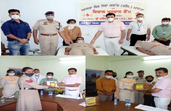 ਪੁਲਿਸ ਲਾਈਨ ਮਾਨਸਾ ਵਿਖੇ ਲਗਾਏ ਕੈਂਪ ਦੌੌਰਾਨ 34 ਯੂਨਿਟ ਕੀਤਾ ਗਿਆ ਖੂਨਦਾਨ