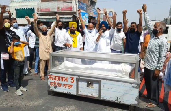 ਨਾਭਾ (ਸੁਖਚੈਨ ਲੁਬਾਣਾ) : ਪੰਜਾਬ ਵਿੱਚ ਸਿਆਸੀ ਦਬਾਅ ਦੇ ਕਰ ਕੇ ਲਗਾਤਾਰ ਮਾਮਲੇ ਵਧਦੇ ਜਾ ਰਹੇ ਹਨ। ਸਿਆਸੀ ਦਬਾਅ ਦੇ ਕਰਕੇ ਆਮ ਲੋਕਾਂ ਨੂੰ ਸੜਕਾਂ ਤੇ ਉਤਰਨਾ ਪੈ ਰਿਹਾ ਹੈ। ਜਿਸ ਦੀ ਤਾਜ਼ਾ ਮਿਸਾਲ ਵੇਖਣ ਨੂੰ ਮਿਲੀ ਨਾਭਾ ਵਿਖੇ ਜਿੱਥੇ ਬਲਬੀਰ ਸਿੰਘ ਉਮਰ (67) ਸਾਲ ਦੇ ਘਰ ਵਿੱਚ ਕਰੀਬ 15 ਦਿਨ ਪਹਿਲਾਂ ਗੁੰਡਾ ਅਨਸਰਾਂ ਵੱਲੋਂ ਕੁੱਟਮਾਰ ਕਰਨ ਦੇ ਪਰਿਵਾਰਕ ਮੈਂਬਰਾਂ ਨੇ ਆਰੋਪ ਲਗਾਏ ਸਨ ਅਤੇ ਪੁਲਸ ਵੱਲੋਂ ਢਿੱਲੀ ਕਾਰਗੁਜ਼ਾਰੀ ਦੇ ਕਰਦੇ ਆਰੋਪੀਆਂ ਦੇ ਖਿਲਾਫ ਕੋਈ ਕਾਰਵਾਈ ਨਹੀਂ ਕੀਤੀ ਗਈ। ਬਲਬੀਰ ਸਿੰਘ ਦੀ ਮੌਤ ਤੋਂ ਬਾਅਦ ਪੀਡ਼ਤ ਪਰਿਵਾਰਕ ਮੈਂਬਰਾਂ ਨੇ ਨਾਭਾ ਦੇ ਮੁੱਖ ਚੌਕ ਬੋੜਾ ਗੇਟ ਵਿਖੇ ਲਾਸ਼ ਨੂੰ ਰੱਖ ਕੇ ਚੱਕਾ ਜਾਮ ਕਰਕੇ ਪੰਜਾਬ ਦੇ ਕੈਬਨਿਟ ਮੰਤਰੀ ਸਾਧੂ ਸਿੰਘ ਧਰਮਸੋਤ ਅਤੇ ਪੁਲਸ ਪ੍ਰਸ਼ਾਸਨ ਦੇ ਖਿਲਾਫ ਜੰਮ ਕੇ ਨਾਅਰੇਬਾਜ਼ੀ ਕੀਤੀ। ਇਸ ਮੌਕੇ ਤੇ ਨਾਭਾ ਦੇ ਐਸਐਚਓ ਸੁਰਿੰਦਰ ਭੱਲਾ ਨੇ ਕਿਹਾ ਕਿ ਇਨ੍ਹਾਂ ਦੀ ਇਨਕੁਆਰੀ ਐੱਸਪੀਡੀ ਪਟਿਆਲਾ ਦੇ ਲੱਗੀ ਹੋਈ ਹੈ ਅਤੇ ਫਿਰ ਵੀ ਅਸੀਂ ਕਰਾਸ ਪਰਚਾ ਕਰ ਰਹੇ ਹਾਂ।
