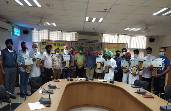 ਕਿਸਾਨ ਨੂੰ ਜੋਕਿ ਪਿਛਲੇ ਕਾਫੀ ਸਮੇਂ ਤੋਂ ਫਸਲਾਂ ਦੀ ਰਹਿੰਦ ਖੂੰਹਦ ਨੂੰ ਅਗ ਨਾ ਲਗਾਉਣ ਦੀ ਬਜਾਏ ਨਾੜ \ਪਰਾਲੀ ਪ੍ਰਬੰਧਨ ਕਰਨ ਵਾਲੀ ਖੇਤੀ ਮਸ਼ੀਨਰੀ ਨਾਲ ਖੇਤਾਂ ਵਿਚ ਵਾਹ ਰਹੇ ਹਨ, ਉਹਨਾਂ ਨੂੰ ਧਰਤੀ ਮਾਤਾ ਦੀ ਸੇਵਾ ਕਰਨ ਅਤੇ ਵਾਤਾਵਰਣ ਪ੍ਰੇਮੀ ਹੋਣ ਵਜੋਂ ਪ੍ਰਸ਼ੰਸਾ ਪਤਰ ਅਤੇ ਸਨਮਾਨ ਚਿੰਨ੍ਹ ਦੇ ਕੇ ਸਨਮਾਨਿਤ ਕੀਤਾ ਗਿਆ ।