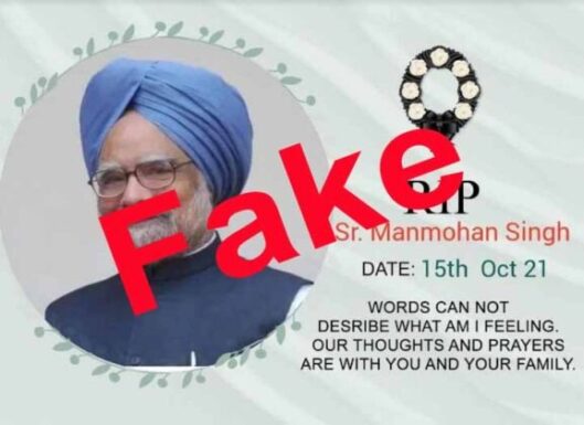 ਸੋਸ਼ਲ ਮੀਡੀਆ ਤੇ ਇਸ ਵੇਲੇ ਬੜੀ ਤੇਜ਼ੀ ਦੇ ਨਾਲ ਇੱਕ ਖ਼ਬਰ ਵਾਇਰਲ ਹੋ ਰਹੀ ਹੈ, ਜਿਸ ਵਿੱਚ ਦਾਅਵਾ ਕੀਤਾ ਜਾ ਰਿਹਾ ਹੈ ਕਿ, ਸਾਬਕਾ ਪ੍ਰਧਾਨ ਮੰਤਰੀ ਡਾਕਟਰ ਮਨਮੋਹਨ ਸਿੰਘ ਨਹੀਂ ਰਹੇ। ਪੰਜਾਬ ਨੈੱਟਵਰਕ ਦੀ ਟੀਮ ਨੇ ਜਦੋਂ ਇਸ ਵਾਇਰਲ ਖ਼ਬਰ ਦੀ ਪੜਤਾਲ ਕੀਤੀ ਤਾਂ, ਉਕਤ ਖ਼ਬਰ ਜਾਅਲੀ ਨਿਕਲੀ।ਦੱਸਣਾ ਬਣਦਾ ਹੈ ਕਿ, ਅੱਜ ਸਵੇਰ ਤੋਂ ਹੀ ਸੋਸ਼ਲ ਮੀਡੀਆ ਤੇ ਇੱਕ ਪੋਸਟ, ਜਿਸ ਵਿੱਚ ਡਾਕਟਰ ਮਨਮੋਹਨ ਸਿੰਘ ਦੀ ਤਸਵੀਰ ਲਗਾ ਕੇ ਲਿਖਿਆ ਜਾ ਰਿਹਾ ਕਿ, ਸਾਬਕਾ ਪ੍ਰਧਾਨ ਮੰਤਰੀ ਡਾਕਟਰ ਮਨਮੋਹਨ ਸਿੰਘ ਨਹੀਂ ਰਹੇ। ਇਹ ਜਾਅਲੀ ਖ਼ਬਰ ਵੈਸੇ ਤਾਂ, ਸਭ ਨੂੰ ਪਤਾ ਹੀ ਹੈ ਕਿ, ਕਿਸ ਪਾਰਟੀ ਦਾ ਆਈਟੀ ਸੈੱਲ ਫ਼ੈਲਾਅ ਰਿਹਾ ਹੈ।ਦੱਸਣਾ ਬਣਦਾ ਹੈ ਕਿ, ਅੱਜ ਸਵੇਰ ਤੋਂ ਹੀ ਸੋਸ਼ਲ ਮੀਡੀਆ ਤੇ ਇੱਕ ਪੋਸਟ, ਜਿਸ ਵਿੱਚ ਡਾਕਟਰ ਮਨਮੋਹਨ ਸਿੰਘ ਦੀ ਤਸਵੀਰ ਲਗਾ ਕੇ ਲਿਖਿਆ ਜਾ ਰਿਹਾ ਕਿ, ਸਾਬਕਾ ਪ੍ਰਧਾਨ ਮੰਤਰੀ ਡਾਕਟਰ ਮਨਮੋਹਨ ਸਿੰਘ ਨਹੀਂ ਰਹੇ। ਇਹ ਜਾਅਲੀ ਖ਼ਬਰ ਵੈਸੇ ਤਾਂ, ਸਭ ਨੂੰ ਪਤਾ ਹੀ ਹੈ ਕਿ, ਕਿਸ ਪਾਰਟੀ ਦਾ ਆਈਟੀ ਸੈੱਲ ਫ਼ੈਲਾਅ ਰਿਹਾ ਹੈ। ਪਰ, ਫਿਰ ਵੀ ਅੰਧ ਭਗਤ ਲਗਾਤਾਰ ਉਕਤ ਪੋਸਟ ਦੀ ਪੜ੍ਹਤਾਲ ਕੀਤੇ ਬਗ਼ੈਰ ਹੀ ਅੱਗੇ ਵਾਇਰਲ ਕਰ ਰਹੇ ਹਨ। ਪੰਜਾਬ ਨੈੱਟਵਰਕ ਵੱਲੋਂ ਸਮੂਹ ਪਾਠਕਾਂ ਨੂੰ ਅਪੀਲ ਹੈ ਕਿ, ਅਜਿਹੀਆਂ ਜਾਅਲੀ ਖ਼ਬਰਾਂ ਤੇ ਧਿਆਨ ਨਾ ਦਿੱਤਾ ਜਾਵੇ ਅਤੇ ਸੱਚ ਦੀ ਪੜਤਾਲ ਲਈ ਨਿਊਜ਼ ਏਜੰਸੀਆਂ ਦੇ ਟਵਿੱਟਰ ਹੈਂਡਲ ਨੂੰ ਇੱਕ ਵਾਰ ਜ਼ਰੂਰ ਚੈੱਕ ਕਰ ਲਿਆ ਜਾਵੇ। ਦਰਅਸਲ, ਬੁਖ਼ਾਰ ਦੇ ਨਾਲ ਪੀੜਤ ਸਾਬਕਾ ਪ੍ਰਧਾਨ ਮੰਤਰੀ ਡਾਕਟਰ ਮਨਮੋਹਨ ਸਿੰਘ ਇਸ ਵੇਲੇ ਦਿੱਲੀ ਦੇ ਏਮਜ਼ ਵਿੱਚ ਦਾਖ਼ਲ ਹਨ ਅਤੇ ਉਨ੍ਹਾਂ ਦਾ ਇਲਾਜ਼ ਡਾਕਟਰਾਂ ਵੱਲੋਂ ਕੀਤਾ ਜਾ ਰਿਹਾ ਹੈ। ਡਾਕਟਰਾਂ ਦੇ ਮੁਤਾਬਿਕ, ਸਾਬਕਾ ਪ੍ਰਧਾਨ ਮੰਤਰੀ ਦੀ ਹਾਲਤ ਵਿੱਚ ਪਹਿਲਾਂ ਨਾਲੋਂ ਕਾਫ਼ੀ ਜਿਆਦਾ ਸੁਧਾਰ ਹੋਇਆ ਹੈ।