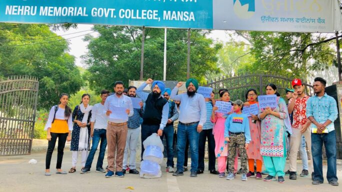 ਮਾਨਸਾ 6 ਨਵੰਬਰ {ਗੁਰਜੰਟ ਸਿੰਘ ਬਾਜੇਵਾਲੀਆ} ਲੰਬੇ ਸਮੇਂ ਤੋਂ ਸਰਕਾਰੀ ਕਾਲਜਾਂ ਵਿੱਚ ਕੰਮ ਕਰਦੇ ਗੈੱਸਟ ਫੈਕਲਟੀ ਸਹਾਇਕ ਪ੍ਰੋਫੈਸਰਾਂ ਨੇ ਪੰਜਾਬ ਪੱਧਰ ਤੇ ਆਪਣੇ ਆਪਣੇ ਕਾਲਜਾਂ ਵਿਚ ਕਾਂਗਰਸ ਸਰਕਾਰ ਦੇ ਲਾਰਿਆਂ ਦੀ ਪੰਡ ਫੂਕ ਕੇ ਰੋਸ ਪ੍ਰਦਰਸ਼ਨ ਕੀਤੇ। ਕਾਲਜਾਂ ਵਿੱਚ ਗੇਟ ਰੈਲੀਆਂ ਕਰਕੇ ਆਪਣੇ ਹੱਕਾਂ ਦੀ ਪ੍ਰਾਪਤੀ ਲਈ ਦੁਹਾਈ ਪਾਉਂਦੇ ਗੈੱਸਟ ਫੈਕਲਟੀ ਸਹਾਇਕ ਪ੍ਰੋਫੈਸਰਾਂ ਨੇ ਸਰਕਾਰ ਦਾ ਜੰਮ ਕੇ ਪਿੱਟ ਸਿਆਪਾ ਕੀਤਾ। ਜਿਕਰਯੋਗ ਹੈ ਕਿ ਸੂਬੇ ਦੇ ਸਰਕਾਰੀ ਕਾਲਜਾਂ ਵਿੱਚ ਆਰਥਿਕ ਅਤੇ ਮਾਨਸਿਕ ਸੋਸ਼ਣ ਦਾ ਸ਼ਿਕਾਰ ਹੋਏ ਗੈੱਸਟ ਫੈਕਲਟੀ ਸਹਾਇਕ ਪ੍ਰੋਫੈਸਰਾਂ ਨੇ ਕਿਹਾ ਕਿ ਸਰਕਾਰ ਵੱਲੋਂ ਨਵੀਆਂ ਅਸਾਮੀਆਂ ਕੱਢ ਕੇ ਉਹਨਾਂ ਦੇ ਨੋਕਰੀ ਨਾਲ ਖਿਲਵਾੜ ਕੀਤਾ ਜਾ ਰਿਹਾ ਹੈ ਜਿਸਨੂੰ ਕਿਸੇ ਵੀ ਕੀਮਤ ਤੇ ਸਹਿਣ ਨਹੀਂ ਕੀਤਾ ਜਾਵੇਗਾ। ਐਸੋਸੀਏਸ਼ਨ ਦੇ ਸੂਬਾ ਪ੍ਰਧਾਨ ਡਾ. ਰਾਵਿੰਦਰ ਸਿੰਘ ਮਾਨਸਾ ਨੇ ਦੱਸਿਆ ਕਿ ਸਰਕਾਰ ਨੇ ਮਾਪਿਆ ਅਤੇ ਉਹਨਾਂ ਦੇ ਬੱਚਿਆਂ ਤੋਂ ਪੈਸੇ ਇਕੱਤਰ ਕਰਕੇ 15-20 ਸਾਲਾਂ ਤੋਂ ਸਰਕਾਰੀ ਕਾਲਜਾਂ ਨੂੰ ਚਲਾਇਆ ਹੈ ਜਦ ਕਿ ਸਿੱਖਿਆ ਪ੍ਰਦਾਨ ਕਰਨਾ ਸਰਕਾਰ ਦਾ ਮੁੱਢਲਾ ਫਰਜ ਹੈ। ਉਹਨਾਂ ਦੱਸਿਆ ਕਿ ਪੀ.ਟੀ.ਏ ਫੰਡਾਂ ਵਿੱਚੋਂ ਅਧਿਆਪਕਾ ਨੂੰ ਤਨਖਾਹ ਦਿੱਤੀ ਜਾ ਰਹੀ ਹੈ ਜਿਸ ਕਾਰਨ ਗਰੀਬ ਵਿਦਿਆਰਥੀਆਂ ਤੇ ਆਰਥਿਕ ਬੋਝ ਵੱਧ ਰਿਹਾ ਹੈ ਅਤੇ ਉਹ ਉੱਚ ਸਿੱਖਿਆ ਪ੍ਰਾਪਤ ਕਰਨ ਤੋਂ ਵਾਝੇ ਹੋ ਰਹੇ ਹਨ। ਉਹਨਾਂ ਦੱਸਿਆ ਕਿ ਸਰਕਾਰੀ ਕਾਲਜਾਂ ਵਿਚ ਇਸ ਵਕਤ 906 ਗੈੱਸਟ ਪ੍ਰੋਫੈਸਰ ਕੰਮ ਕਰ ਰਹੇ ਹਨ ਜਿਨ੍ਹਾਂ ਨੇ ਆਪਣੀ ਜਿੰਦਗੀ ਦਾ ਸੁਨਹਿਰੀ ਸਮਾਂ ਸਰਕਾਰੀ ਕਾਲਜਾਂ ਨੂੰ ਚਲਾਉਣ ਚ ਲਗਾਇਆ ਹੈ। ਉਹਨਾਂ ਪੰਜਾਬ ਸਰਕਾਰ ਨੂੰ ਚੇਤਾਵਨੀ ਦਿੱਤੀ ਕਿ ਜੇਕਰ ਜਲਦ ਉਹਨਾਂ ਦੀ ਨੌਕਰੀ ਨੁੰ ਸੁਰੱਖਿਅਤ ਕਰਨ ਅਤੇ ਉਹਨਾਂ ਦੀ ਸਾਰੀ ਤਨਖਾਹ 56100 ਸਰਕਾਰੀ ਖਜਾਨੇ ਚੋਂ ਦੇਣ ਦਾ ਨੋਟੀਫਿਕੇਸ਼ਨ ਜਾਰੀ ਨਾ ਕੀਤਾ ਗਿਆ ਤਾਂ ਉਹ ਗੁਪਤ ਐਕਸ਼ਨ ਦੇ ਨਾਲ ਨਾਲ ਰਾਜ ਪੱਧਰ ਤੇ ਵੀ ਵੱਡੇ ਸੰਘਰਸ਼ ਕਰਨ ਲਈ ਤਿਆਰ ਹਨ ਜਿਸ ਦੀ ਪੂਰੀ ਜਿਮੇਵਾਰੀ ਪੰਜਾਬ ਸਰਕਾਰ ਦੀ ਹੋਵੇਗੀ। ਸਥਾਨਕ ਨਹਿਰੂ ਮੈਮੋਰੀਅਲ ਸਰਕਾਰੀ ਕਾਲਜ ਵਿਖੇ ਜਿਲ੍ਹਾ ਪ੍ਰਧਾਨ ਪ੍ਰੋ. ਕੁਲਦੀਪ ਸਿੰਘ ਢਿੱਲੋਂ ਅਤੇ ਸਰਪ੍ਰਸਤ ਪ੍ਰੋ. ਅੰਬੇਸ਼ ਭਾਰਦਵਾਜ ਦੀ ਅਗਵਾਈ ਵਿੱਚ ਕਾਲਜ ਵਿਖੇ ਤਿੱਖੇ ਰੋਸ ਪ੍ਰਦਰਸ਼ਨ ਦੇ ਨਾਲ ਹੀ ਗੇਟ ਰੈਲੀ ਕੀਤੀ ਗਈ ਅਤੇ ਚੰਨੀ ਸਰਕਾਰ ਦੇ ਲਾਰਿਆਂ ਦੀ ਪੰਡ ਕਾਲਜ ਗੇਟ ਤੇ ਫੂਕੀ ਗਈ। ਰੋਸ ਪ੍ਰਦਰਸ਼ਨ ਚ ਸ਼ਾਮਲ ਪ੍ਰੋ. ਕੁਲਦੀਪ ਚੌਹਾਨ, ਡਾ. ਅਜਮੀਤ ਕੌਰ, ਪ੍ਰੋ. ਬਲਜੀਤ ਸਿੰਘ, ਡਾ. ਤਨਵੀਰ, ਪ੍ਰੋ. ਜੋਤੀ, ਪ੍ਰੋ. ਪ੍ਰਤੀਭਾ ਜਿੰਦਲ ਨੇ ਦੱਸਿਆ ਕਿ ਜੇਕਰ ਉਹਨਾਂ ਦੀ ਨੌਕਰੀ ਨੂੰ ਸੁਰੱਖਿਅਤ ਨਾ ਕੀਤਾ ਗਿਆ ਤਾਂ ਆਉਣ ਵਾਲੇ ਦਿਨਾਂ ਵਿੱਚ ਆਪਣੇ ਪਰਿਵਾਰਾਂ, ਰਿਸ਼ਤੇਦਾਰਾਂ ਨੂੰ ਨਾਲ ਲੈ ਕੇ ਪੰਜਾਬ ਸਰਕਾਰ ਖਿਲਾਫ ਤਿੱਖਾ ਸੰਘਰਸ਼ ਕਰਨ ਦੀ ਰੌਅ ਚ ਹਨ।