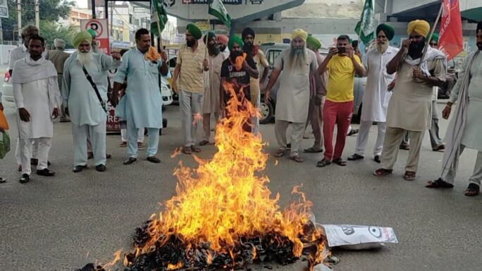 ਮੋਗਾ 29 ਅਗਸਤ ( ਹੈੱਪੀ ਢੰਡ) ਹਰਿਆਣਾ ਸਰਕਾਰ ਵੱਲੋਂ ਕੱਲ ਕਰਨਾਲ ਜ਼ਿਲ੍ਹੇ ਵਿੱਚ ਕਿਸਾਨਾਂ ਉੱਤੇ ਕੀਤੇ ਅੰਨ੍ਹੇਵਾਹ ਲਾਠੀਚਾਰਜ ਦੇ ਵਿਰੋਧ ਵਿੱਚ ਅੱਜ ਇੱਥੇ ਮੁੱਖ ਚੌਂਕ ‘ਚ ਖੱਟਰ ਸਰਕਾਰ ਦਾ ਪੁਤਲਾ ਫੂਕਿਆ ਗਿਆ। ਇਸ ਮੌਕੇ ਗੱਲਬਾਤ ਕਰਦਿਆਂ ਕਿਸਾਨ ਆਗੂ ਬੂਟਾ ਸਿੰਘ ਤਖਾਣਵੱਧ, ਦਰਸ਼ਨ ਸਿੰਘ ਰੌਲੀ ਅਤੇ ਸੁਖਜਿੰਦਰ ਮਹੇਸਰੀ ਨੇ ਕਿਹਾ ਕਿ ਖੱਟਰ ਸਰਕਾਰ ਰੋਟੀ ਦੇਣ ਵਾਲੇ ਅੰਨਦਾਤਿਆਂ ਨੂੰ ਵੱਢਣਾ ਬੰਦ ਕਰੇ। ਭਾਜਪਾ ਸਰਕਾਰ ਅਦਾਨੀਆਂ ਅਬਾਨੀਆਂ ਅੱਗੇ ਪੂਛ ਹਿਲਾਉਣ ਦੀ ਥਾਂ, ਦੇਸ਼ ਦੇ ਵਿੱਚ ਅਨਾਜ਼ ਪੈਦਾ ਕਰਨ ਵਾਲਿਆਂ ਦਾ ਸਨਮਾਨ ਕਰੇ। ਕਿਸਾਨ ਆਗੂਆਂ ਨੇ ਕਿਹਾ ਜੇਕਰ ਭਾਜਪਾ ਸਰਕਾਰ ਬੇਸ਼ਰਮੀ ਦੀਆਂ ਸਭ ਹੱਦਾਂ ਟੱਪ ਕੇ ਕਾਰਪੋਰੇਟ ਘਰਾਣਿਆਂ ਦੀ ਦਲਾਲੀ ਖਾਤਰ ਕਿਸਾਨ ਅੰਦੋਲਨ ਨੂੰ ਦਬਾਉਣ ਦੀ ਕੋਸ਼ਿਸ਼ ਕਰੇਗੀ ਤਾਂ ਇਸਨੂੰ ਕਿਸੇ ਵੀ ਕੀਮਤ ਉੱਤੇ ਬਰਦਾਸ਼ਤ ਨਹੀਂ ਕੀਤਾ ਜਾਵੇਗਾ। ਉਹਨਾਂ ਕਿਹਾ ਕਿ ਸਰਕਾਰ ਦੇਸ਼ ਦੇ ਮੁੱਠੀਭਰ ਲੁਟੇਰੇ ਘਰਾਣਿਆਂ ਨੂੰ ਦੇਸ਼ ਦੇ ਮਾਲਕ ਬਣਾ ਕੇ, ਲੋਕਾਂ ਨੂੰ ਗੁਲਾਮ ਬਣਾਉਣ ਲਈ ਕਾਲੇ ਕਾਨੂੰਨ ਲਾਗੂ ਕਰਨ ਦੀ ਜਿੱਦ ਕਰ ਰਹੀ ਹੈ। ਕਿਸਾਨ ਅੰਦੋਲਨ ਚਾਹੁੰਦਾ ਕਿ ਅਨਾਜ਼ ਗੁਦਾਮਾਂ ਵਿੱਚ ਕੈਦ ਹੋਣ ਦੀ ਬਜਾਏ, ਦੇਸ਼ ਦੇ ਲੋਕਾਂ ਦਾ ਢਿੱਡ ਭਰਦੇ ਰਹਿਣਾ ਚਾਹੀਦਾ। ਅੱਜ ਰੋਸ ਪ੍ਰਦਰਸ਼ਨ ਦੌਰਾਨ ਪ੍ਰਦਰਸ਼ਨਕਾਰੀਆਂ ਨੇ ਮੰਗ ਕੀਤੀ ਕਿ ਲਾਠੀਚਾਰਜ ਦੇ ਗੈਰਮਨੁੱਖੀ ਹੁਕਮ ਦੇਣ ਵਾਲਾ ਐੱਸ ਡੀ ਐੱਮ ਤੁਰੰਤ ਬਰਖ਼ਾਸਤ ਹੋਣਾ ਚਾਹੀਦਾ ਹੈ।