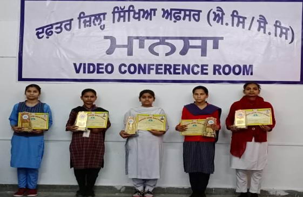 ਮਾਨਸਾ (ਗੁਰਜੰਟ ਸਿੰਘ ਬਾਜੇਵਾਲੀਆ) : ਸਮੱਗਰਾ ਸਿੱਖਿਆ ਅਭਿਆਨ ਤਹਿਤ ਫਰਵਰੀ 2021 ਮਹੀਨੇ ਦੌਰਾਨ ਵੱਖ-ਵੱਖ ਵੰਨਗੀਆਂ ਦੇ ਜ਼ਿਲ੍ਹਾ ਪੱਧਰੀ ਕਲਾ ਉਤਸਵ ਦੇ ਵੱਖ-ਵੱਖ ਕਰਵਾਏ ਗਏ ਮੁਕਾਬਲਿਆਂ ਵਿੱਚ ਜੇਤੂ ਰਹੇ ਵਿਦਿਆਰਥੀਆਂ ਨੂੰ ਅੱਜ ਜ਼ਿਲ੍ਹਾ ਸਿੱਖਿਆ ਅਫ਼ਸਰ (ਸ) ਸ਼੍ਰੀ ਸੰਜੀਵ ਕੁਮਾਰ ਬਾਂਸਲ ਵੱਲੋਂ ਜ਼ਿਲ੍ਹਾ ਸਿੱਖਿਆ ਦਫ਼ਤਰ ਵਿਖੇ ਸਨਮਾਨਿਤ ਕੀਤਾ ਗਿਆ।
