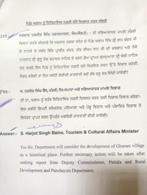 ਚੰਡੀਗੜ੍ਹ, 27 ਜੂਨ – ਵਿਧਾਇਕ ਹਰਮੀਤ ਸਿੰਘ ਪਠਾਣਮਾਜਰਾ ਵਲੋਂ ਘੜਾਮ ਨੂੰ ਇਤਿਹਾਸਿਕ ਨਗਰੀ ਵਜੋਂ ਵਿਕਸਤ ਕਰਨ ਸਬੰਧੀ ਪੁੱਛੇ ਗਏ ਸਵਾਲ ਦਾ ਜਵਾਬ ਦਿੰਦਿਆਂ ਸੈਰ ਸਪਾਟਾ ਅਤੇ ਸਭਿਆਚਾਰਕ ਮਾਮਲੇ ਵਿਭਾਗ ਦੇ ਮੰਤਰੀ ਹਰਜੋਤ ਸਿੰਘ ਬੈਂਸ ਨੇ ਕਿਹਾ ਕਿ ਘੜਾਮ ਨੂੰ ਬਤੌਰ ਇਤਿਹਾਸਿਕ ਨਗਰੀ ਵਿਕਸਤ ਕਰਨ ਲਈ ਵਿਭਾਗ ਵਿਚਾਰ ਕਰੇਗਾ। ਇਸ ਲਈ ਡਿਪਟੀ ਕਮਿਸ਼ਨਰ ਪਟਿਆਲਾ ਅਤੇ ਪੇਂਡੂ ਵਿਕਾਸ ਅਤੇ ਪੰਚਾਇਤ ਵਿਭਾਗ ਤੋਂ ਰਿਪੋਰਟ ਪ੍ਰਾਪਤ ਕਰਨ ਉਪਰੰਤ ਅਗਲੇਰੀ ਕਾਰਵਾਈ ਕੀਤੀ ਜਾਵੇਗੀ।