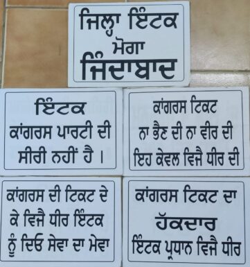 ਇਸ ਮੌਕੇ ਜ਼ਿਲ੍ਹਾ ਇੰਟਕ ਪ੍ਰਧਾਨ ਵਿਜੇ ਧੀਰ ਐਡਵੋਕੇਟ ਨੇ ਮਿਡ ਡੇ ਮੀਲ ਕੁੱਕਾਂ ਦੀ ਵਿਸ਼ਾਲ ਇਕੱਤਰਤਾ ਨੂੰ ਸੰਬੋਧਨ ਕਰਦਿਆਂ ਕਿਹਾ ਕਿ ਉਹ ਸਾਲ 2002,2007,2012, ਅਤੇ 2013 ਦੀ ਉਪ ਚੋਣ ਅਤੇ 2017 ਵਿੱਚ ਵੀ ਕਾਂਗਰਸ ਪਾਰਟੀ ਦੀ ਮੋਗਾ ਵਿਧਾਨਸਭਾ ਹਲਕੇ ਤੋਂ ਟਿਕਟ ਦੇ ਦਾਅਵੇਦਾਰ ਸਨ। ਧੀਰ ਨੇ ਕਿਹਾ ਕਿ 2013 ਦੀ ਮੋਗਾ ਵਿਧਾਨਸਭਾ ਹਲਕੇ ਦੇ ਉਪ ਚੋਣ ਵਿੱਚ ਤਾਤਕਲੀਨ ਕਾਂਗਰਸ ਪਾਰਟੀ ਦੇ ਪ੍ਰਧਾਨ ਅਤੇ ਮੋਜੂਦਾ ਮੁੱਖ ਮੰਤਰੀ ਕੈਪਟਨ ਅਮਰਿੰਦਰ ਸਿੰਘ ਨੇ ਮੋਜੂਦਾ ਵਿਧਾਨ ਸਭਾ ਸਪੀਕਰ ਰਾਣਾ ਕੇ ਪੀ ਸਿੰਘ ਨੂੰ ਗੁਪਤ ਰੂਪ ਵਿੱਚ ਉਨ੍ਹਾਂ ਪਾਸ ਭੇਜ ਕੇ ਉਨ੍ਹਾਂ ਨੂੰ ਮੋਗਾ ਤੋਂ ਕਾਂਗਰਸ ਪਾਰਟੀ ਉਮੀਦਵਾਰ ਬਣਾਉਣ ਦਾ ਸੁਨੇਹਾ ਭੇਜਿਆ ਸੀ। ਧੀਰ ਨੇ ਇਹ ਗੱਲ ਦੱਸੀ ਕਿ ਉਨ੍ਹਾਂ ਨੂੰ 2013 ਦੀ ਉਪ ਚੋਣ ਵਿੱਚ ਟਿਕਟ ਨਾਂ ਲੈ ਕੇ ਦੇ ਸਕਣ ਤੇ ਕੈਪਟਨ ਅਮਰਿੰਦਰ ਸਿੰਘ ਨੇ ਉਨ੍ਹਾਂ ਨਾਲ ਫੋਨ ਤੇ ਖੇਦ ਵਿਅਕਤ ਕੀਤਾ ਸੀ ਅਤੇ ਬਾਅਦ ਵਿੱਚ ਖ਼ੁਦ ਚੱਲਕੇ ਉਨ੍ਹਾਂ ਦੇ ਨਿਵਾਸ ਸਥਾਨ ਤੇ ਆ ਕੇ ਭਵਿੱਖ ਵਿੱਚ ਉਨ੍ਹਾਂ ਨੂੰ ਟਿਕਟ ਲੈਕੇ ਦੇਣ ਦਾ ਪਬਲਿਕ ਵਿੱਚ ਅਤੇ ਇੰੰਟਕ ਵਰਕਰਾਂ ਦੀ ਹਾਜ਼ਰੀ ਵਿੱਚ ਐਲਾਨ ਕੀਤਾ ਸੀ। ਧੀਰ ਨੇ ਕਿਹਾ ਕਿ 2017 ਵਿੱਚ ਕਾਂਗਰਸ ਪਾਰਟੀ ਦੇ ਰਣਨੀਤੀਕਾਰ ਪ੍ਰਸ਼ਾਂਤ ਕਿਸ਼ੋਰ ਵੱਲੋਂ ਉਨ੍ਹਾਂ ਦੀ ਸਿਫਾਰਸ਼ ਕੀਤੇ ਜਾਣ ਦੇ ਬਾਵਜੂਦ ਵੀ ਉਨ੍ਹਾਂ ਨੂੰ ਕਾਂਗਰਸ ਪਾਰਟੀ ਦੀ ਟਿਕਟ ਨਾਲ ਨਹੀਂ ਨਿਵਾਜਿਆ ਗਿਆ। ਧੀਰ ਨੇ ਕਿਹਾ ਕਿ ਜ਼ਿਲ੍ਹਾ ਭਰ ਦੇ ਇੰੰਟਕ ਵਰਕਰਾਂ ਵਿੱਚ ਡੂੰਘਾ ਰੋਸ ਪਾਇਆ ਜਾ ਰਿਹਾ ਹੈ। ਜ਼ਿਲ੍ਹਾ ਇੰਟਕ ਪ੍ਰਧਾਨ ਵਿਜੇ ਧੀਰ ਐਡਵੋਕੇਟ ਨੇ ਇੰਟਕ ਵਰਕਰਾਂ ਨੂੰ ਸਪਸ਼ਟ ਕੀਤਾ ਕਿ ਜੇਕਰ ਕਾਂਗਰਸ ਪਾਰਟੀ ਨੇ 2022 ਦੀਆਂ ਵਿਧਾਨ ਸਭਾ ਚੋਣਾਂ ਵਿੱਚ ਮੋਗਾ ਤੋਂ ਉਨ੍ਹਾਂ ਨੂੰ ਟਿਕਟ ਨਾਂ ਦੇ ਕੇ ਇਗਨੋਰ ਕੀਤਾ ਤਾਂ ਜ਼ਿਲ੍ਹਾ ਇੰਟਕ 2022 ਦੀਆਂ ਵਿਧਾਨ ਸਭਾ ਚੋਣਾਂ ਵਿੱਚ ਕਾਂਗਰਸ ਪਾਰਟੀ ਦੀ ਸੀਰੀ ਬਣਕੇ ਕਾਂਗਰਸ ਪਾਰਟੀ ਦਾ ਸਾਥ ਨਹੀਂ ਦੇਵੇਗੀ। ਇਥੇ ਇਹ ਗੱਲ ਜ਼ਿਕਰਯੋਗ ਹੈ ਕਿ ਭਾਰੀ ਗਿਣਤੀ ਵਿੱਚ ਹਾਜ਼ਰ ਮਿਡ ਡੇ ਮੀਲ ਕੁੱਕਾਂ ਅਤੇ ਦੁਸਰੀਆਂ ਇੰਟਕ ਜਥੇਬੰਦੀਆਂ ਦੇ ਵਰਕਰਾਂ ਨੇ ਹੱਥਾਂ ਵਿੱਚ ਤਖ਼ਤੀਆਂ ਫੜੀਆਂ ਹੋਈਆਂ ਸਨ ਜਿਨ੍ਹਾਂ ਵਿੱਚ “ਇੰਟਕ ਕਾਂਗਰਸ ਪਾਰਟੀ ਦੀ ਸੀਰੀ ਨਹੀਂ ਹੈ”, “ਕਾਂਗਰਸ ਟਿਕਟ ਨਾਂ ਕਿਸੇ ਭੈਣ ਦੀ ਨਾਂ ਕਿਸੇ ਵੀਰ ਦੀ ਇਹ ਕੇਵਲ ਵਿਜੇ ਧੀਰ ਦੀ”, “ਕਾਂਗਰਸ ਟਿਕਟ ਵਿਜੇ ਧੀਰ ਇੰਟਕ ਨੂੰ ਦੇਵੇ ਸੇਵਾ ਦਾ ਮੇਵਾ” ਅਤੇ “ਕਾਂਗਰਸ ਪਾਰਟੀ ਦੀ ਟਿਕਟ ਦਾ ਹੱਕਦਾਰ ਇੰਟਕ ਪ੍ਰਧਾਨ ਵਿਜੇ ਧੀਰ ਐਡਵੋਕੇਟ” ਦੇ ਨਾਅਰੇ ਲਿਖੇ ਹੋਏ ਸਨ।