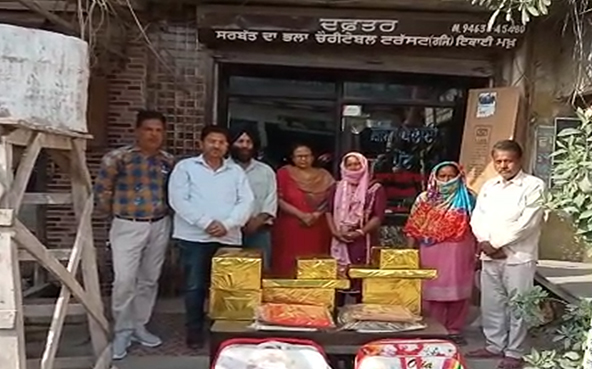 ਸਮਾਨ ਦੇਣ ਸਮੇਂ ਜਿਲ੍ਹਾ ਪ੍ਰਧਾਨ,ਇਸਤਰੀ ਵਿੰਗ ਪ੍ਰਧਾਨ ਅਮਰਜੀਤ ਕੌਰ ਛਾਬੜਾ ਤੇ ਅਹੁਦੇਦਾਰ ਮੌਜੂਦ ਸਨ