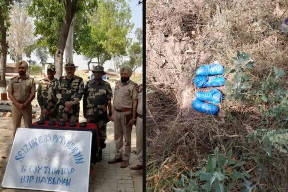 ਉੱਥੇ ਹੀ ਦੂਜੇ ਪਾਸੇ ਤਰਨਤਾਰਨ ਤੋਂ ਇਲਾਵਾ ਫਿਰੋਜ਼ਪੁਰ ’ਚ ਬੀਐੱਸਐਫ ਦੇ ਜਵਾਨਾਂ ਨੂੰ 4 ਪੈਕੇਟ ਹੈਰੋਇਨ ਦੇ ਬਰਾਮਦ ਹੋਏ ਹਨ। ਜਿਨ੍ਹਾਂ ਦਾ ਭਾਰ 1 ਕਿਲੋ ਦੱਸਿਆ ਜਾ ਰਿਹਾ ਹੈ। ਮਿਲੀ ਜਾਣਕਾਰੀ ਮੁਤਾਬਿਕ ਬੀਐੱਸਐਫ ਜਵਾਨਾਂ ਨੂੰ ਦਰੱਖਤ ਨਾਲ ਬੰਨ੍ਹੇ ਚਾਰ ਛੋਟੇ ਪੈਕਟ ਹੈਰੋਇਨ ਦੇ ਮਿਲੇ। ਨਾਲ ਹੀ ਬੀਐੱਸਐਫ ਨੇ ਤਿੰਨ ਕਿਸਾਨਾਂ ਨੂੰ ਹਿਰਾਸਤ ਚ ਲੈ ਲਿਆ ਹੈ। ਫਿਲਹਾਲ ਪੁਲਿਸ ਵੱਲੋਂ ਕਾਰਵਾਈ ਕੀਤੀ ਜਾ ਰਹੀ ਹੈ।18 ਕਰੋੜ ਰੁਪਏ ਦੀ ਦੱਸੀ ਜਾ ਰਹੀ ਹੈਰੋਇਨ: ਤਰਨਤਾਰਨ ਸਰਹੱਦੀ ਖੇਤਰ ਬੀਓਪੀ ਹਵੇਲੀਆਂ ਤੋਂ 3.790 ਕਿਲੋਗ੍ਰਾਮ ਹੈਰੋਇਨ (ਕਰੀਬ 18 ਕਰੋੜ ਰੁਪਏ) ਦੇ ਪੰਜ ਪੈਕੇਟ ਬਰਾਮਦ ਕੀਤੇ ਗਏ ਹਨ। ਬੀਐਸਐਫ ਅਤੇ ਸਥਾਨਕ ਪੁਲਿਸ ਦੇ ਸਾਂਝੇ ਆਪ੍ਰੇਸ਼ਨ ਦੌਰਾਨ ਇਹ ਖੇਪ ਪੇਂਡੂ ਕਿਸਾਨ ਦੇ ਖੇਤ ਚੋਂ ਮਿਲੀ ਹੈ। ਖੇਪ ਨੂੰ ਕਬਜ਼ੇ ‘ਚ ਲੈ ਕੇ ਜਾਂਚ ਸ਼ੁਰੂ ਕਰ ਦਿੱਤੀ ਹੈ। ਕਿਸੇ ਕਿਸਮ ਦੀ ਕੋਈ ਗ੍ਰਿਫ਼ਤਾਰੀ ਨਹੀਂ ਹੋਈ।
