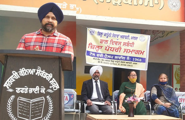 ਮਾਨਸਾ (ਗੁਰਜੰਟ ਸਿੰਘ ਬਾਜੇਵਾਲੀਆ) : ਜ਼ਿਲ੍ਹਾ ਕਾਨੂੰਨੀ ਸੇਵਾਵਾਂ ਅਥਾਰਟੀ ਮਾਨਸਾ ਵੱਲੋਂ ਅਗਾਮੀ 14 ਨਵੰਬਰ ਨੂੰ ਮਨਾਏ ਜਾਣ ਵਾਲੇ ਬਾਲ ਦਿਵਸ ਨੂੰ ਅੱਜ ਸਰਕਾਰੀ ਸੈਕੰਡਰੀ ਸਕੂਲ (ਲੜਕੀਆਂ) ਫਫੜੇ ਭਾਈਕੇ ਵਿਖੇ ਮਨਾਇਆ ਗਿਆ. ਇਸ ਸਬੰਧੀ ਕੀਤੇ ਗਏ ਸਮਾਗਮ ਨੂੰ ਸੰਬੋਧਨ ਕਰਦਿਆਂ ਚੀਫ ਜੂਡੀਸੀਅਲ ਮੈਜਿਸਟ੍ਰੇਟ-ਕਮ-ਸਕੱਤਰ ਜ਼ਿਲ੍ਹਾ ਕਾਨੂੰਨੀ ਸੇਵਾਵਾਂ ਅਥਾਰਟੀ ਸ਼੍ਰੀ ਅਮਨਦੀਪ ਸਿੰਘ ਨੇ ਕਿਹਾ ਕਿ ਬਾਲ ਦਿਵਸ ਮਨਾਉਣਾ ਮਹਿਜ ਇੱਕ ਰਸਮ ਨਹੀ ਹੋਣੀ ਚਾਹੀਦੀ ਸਗੋਂ ਸਾਰੇ ਨਾਗਰਿਕਾਂ ਨੂੰ ਬਾਲਾਂ ਪ੍ਰਤੀ ਜ਼ਿੰਮੇਵਾਰ ਭੂਮਿਕਾ ਨਿਭਾਉਣੀ ਚਾਹੀਦੀ ਹੈ। ਉਨ੍ਹਾਂ ਕਿਹਾ ਕਿ ਬਾਲਾਂ ਨੂੰ ਕੁਪੋਸ਼ਣ ਤੋਂ ਬਚਾਉਣਾ ਅਜੋਕੇ ਸਮੇਂ ਦੀ ਸਭ ਤੋਂ ਵੱਡੀ ਲੋੜ ਹੈ।