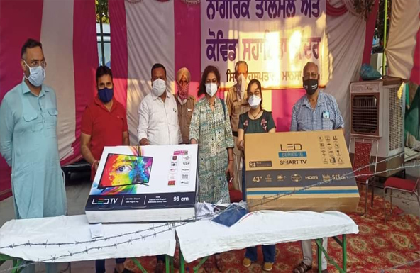 ਮਾਨਸਾ (ਗੁਰਜੰਟ ਸਿੰਘ ਬਾਜੇਵਾਲੀਆ) : ਜਿਲ਼ਾ ਪਰਸ਼ਾਸ਼ਨ ਅਤੇ ਨਾਗਰਿਕ ਤਾਲਮੇਲ ਕਰੋਨਾ ਹੈਲਪ ਡੈਸਕ ਵਿਖੇ ਮੈਡਮ ਮਧੂ ਇੰਚਾਰਜ ਡੀ,ਐਫ,ਐਸ਼,ਸੀ,ਦੀ ਪ੍ਰੇਰਣਾ ਸਦਕਾ ਮਾਨਸਾ ਅਤੇ ਬੁਢਲਾਡਾ ਸ਼ੈਲਰ ਐਸੋਸੀਏਸ਼ਨ ਵਲੋ ਐਲ.ਈ.ਡੀ. ਕਰੋਨਾ ਵਾਰਡ ਵਿੱਚ ਲਿਆਉਣ ਲਈ ਐਸ,ਐਮ,ਓ, ਮਾਨਸਾ ਡਾ ਰੂਬੀ ਨੂੰ ਦਿਤੇ ਗਈਆ ਤਾ ਜੋ ਕਰੋਨਾ ਮਰੀਜ ਦਾ ਮਨੋਰੰਜਨ ਹੋ ਸਕੇ ਇਲਾਜ ਸਮੇ। ਇਸ ਤੋ ਇਲਾਵਾ ਆਈ,ਐਮ,ਏ, ਵਲੋ 5 ਆਕਸੀਜਨ ਸੰਲਡਰ ਉਪਰ ਲੱਗਣ ਵਾਲੀਆ ਪੰਜ ਮਸ਼ੀਨ ਵੀ ਮਾਨਸਾ ਸਰਕਾਰੀ ਹਸਪਤਾਲ ਦੇ ਕੋਵਿਡ ਵਾਰਡ ਨੂੰ ਦਿਤੀਆ ਗਈਆ। ਇਸ ਤੋ ਇਲਾਵਾ 10 ਆਕਸੀਜਨ ਵੀ ਕੋਵਿਡ ਵਾਰਡ ਲਈ ਜਿਲਾ ਭੂਮੀ ਰਖੀਆ ਇੰਚਾਰਜ ਭੁਪਿੰਦਰ ਸਿੰਘ ਵਲੋ ਐਸ਼,ਐਮ,ਓ,ਮਾਨਸਾ ਨੂੰ ਦਾਨ ਦਿਤੇ ਗਏ