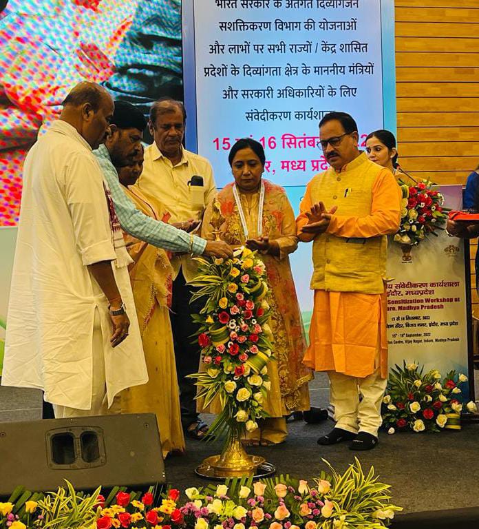 ਇੰਦੌਰ/ਚੰਡੀਗੜ੍ਹ, 15 ਸਤੰਬਰ: ਪੰਜਾਬ ਦੀ ਕੈਬਨਿਟ ਮੰਤਰੀ ਡਾ. ਬਲਜੀਤ ਕੌਰ ਨੇ ਮੱਧ ਪ੍ਰਦੇਸ਼ ਦੇ ਇੰਦੌਰ ਵਿਖੇ ਸਮਾਜਿਕ ਨਿਆਂ ਅਤੇ ਸਸ਼ਕਤੀਕਰਨ ਮੰਤਰਾਲੇ ਵੱਲੋਂ ਦਿਵਿਆਂਗਾਂ (ਵਿਸ਼ੇਸ਼ ਤੌਰ ‘ਤੇ ਅਪਾਹਜ ਵਿਅਕਤੀਆਂ) ਲਈ ਸਕੀਮ ਅਤੇ ਲਾਭਾਂ ਬਾਰੇ ਆਯੋਜਿਤ ਕੌਮੀ ਸੰਵੇਦਨਸ਼ੀਲਤਾ ਵਰਕਸ਼ਾਪ ਵਿੱਚ ਪੰਜਾਬ ਦੀ ਨੁਮਾਇੰਦਗੀ ਕੀਤੀ। ਉਨ੍ਹਾਂ ਦੇ ਨਾਲ ਸੀਨੀਅਰ ਅਧਿਕਾਰੀਆਂ ਦਾ ਵਫ਼ਦ ਵੀ ਮੌਜੂਦ ਸੀ। ਸੂਬਿਆਂ ਅਤੇ ਕੇਂਦਰ ਸ਼ਾਸਿਤ ਪ੍ਰਦੇਸ਼ਾਂ ਦੇ ਵੱਖ-ਵੱਖ ਮੰਤਰੀਆਂ ਅਤੇ ਅਧਿਕਾਰੀਆਂ ਨੇ ਇਸ ਵਰਕਸ਼ਾਪ ਵਿੱਚ ਸ਼ਮੂਲੀਅਤ ਕੀਤੀ।