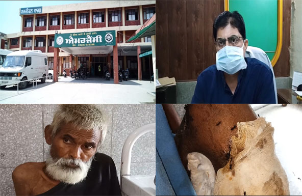 ਬੁਜੁਰਗ ਵਿਅਕਤੀ ਦੀ ਲੱਤ ‘ਤੇ ਕਈ ਦਿਨਾਂ ਤੋਂ ਨਹੀਂ ਕੀਤੀ ਗਈ ਪੱਟੀ ਅਤੇ ਜਖਮਾਂ ਉੱਤੇ ਚੱਲ ਰਹੇ ਸਨ ਕੀੜੇ ।