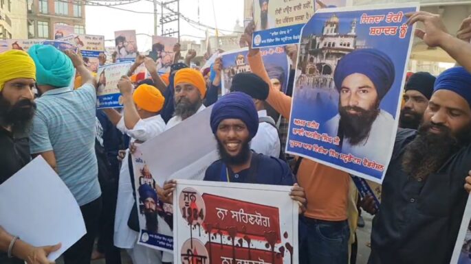 ਛੇ ਜੂਨ ਉੱਨੀ ਸੌ ਚੁਰਾਸੀ ਦੇ ਘੱਲੂਘਾਰਾ ਡੇਵਿਡ ਅਠੱਤੀ ਵੀਂ ਬਰਸੀ ਸੱਚਖੰਡ ਸ੍ਰੀ ਦਰਬਾਰ ਸਾਹਿਬ ਸ੍ਰੀ ਅਕਾਲ ਤਖ਼ਤ ਸਾਹਿਬ ਤੇ ਮਨਾਈ ਜਾ ਰਹੀ ਹੈ ਜਿਸ ਵਿੱਚ ਵੱਖ ਵੱਖ ਸਿੱਖ ਜਥੇਬੰਦੀਆਂ ਤੇ ਨਾਨਕ ਨਾਮਲੇਵਾ ਸੰਗਤ ਸ੍ਰੀ ਅਕਾਲ ਤਖ਼ਤ ਸਾਹਿਬ ਤੇ ਨਤਮਸਤਕ ਹੋਣ ਪਹੁੰਚਦੀ ਹੈ ਜਿਸ ਦੇ ਚਲਦੇ ਦੀਪ ਸਿੱਧੂ ਦੀ ਬਣਾਈ ਜਥੇਬੰਦੀ ਵਾਰਿਸ ਪੰਜਾਬ ਜਥੇਬੰਦੀ ਦੇ ਨੌਜਵਾਨ ਵੀ ਵੱਡੀ ਗਿਣਤੀ ਵਿੱਚ ਸ੍ਰੀ ਦਰਬਾਰ ਸਾਹਿਬ ਪਹੁੰਚੇ ਇਸ ਦੌਰਾਨ ਨੌਜਵਾਨਾਂ ਵੱਲੋਂ ਜੋਸ਼ੀਲੇ ਅੰਦਾਜ਼ ਵਿੱਚ ਖਾਲਿਸਤਾਨ ਜ਼ਿੰਦਾਬਾਦ ਦੇ ਨਾਅਰੇ ਵੀ ਲਗਾਏ ਗਏ
