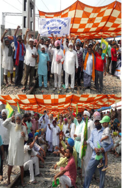 ਬਰਨਾਲਾ : ( ਕਰਨਪਰੀਤ ਧੰਦਰਾਲ) : ਪੰਜਾਬ ਦੀਆਂ 31 ਕਿਸਾਨ ਜੱਥੇਬੰਦੀਆਂ ਤਹਿਤ ਪੱਲੇਦਾਰ ਯੂਨੀਅਨਾਂ ਆੜ੍ਹਤੀਆਂ ਨੇਂ ਇਕਜੁੱਟਤਾ ਦਿਖਾਉਂਦਿਆਂ 25 ਸਤੰਬਰ ਦੇ ਬੰਦ ਨੂੰ ਸਫਲ ਬਨਾਉਣ ਲਈਬਰ ਨਾਲਾ ਰੇਲਵੇ ਪਲੇਟ ਫਾਰਮ ਤੇ ਦਿੱਤਾ ਪੱਕਾ ਧਰਨਾਂ । ਜਿਸ ਵਿੱਚ ਕਿਸਾਨ ਯੂਨੀਅਨਾਂ ਸਮੇਤ ਪੰਜਾਬ ਪ੍ਹਦੇਸ ਪੱਲੇਦਾਰ ਯੂਨੀਅਨ ਆੜ੍ਹਤੀਆਂ ਐਸੋ. ਸਮੇਤ ਹਜਾਰਾਂ ਲੋਕਾਂ ਨੇਂ ਕੇਂਦਰ ਵੱਲੋਂ ਕਿਸਾਨ ਮਾਰੂ ਆਰਡੀਨੈੱਂਸ ਜਾਰੀ ਕਰਨ ਲਈ ਜੋਰਦਾਰ ਨਾਅਰੇਬਾਜੀ ਕਰਦਿਆਂ ਰੋਸ ਜਾਹਿਰ ਕੀਤਾ । ਭਾਰਤੀ ਕਿਸਾਨ ਯੂਨੀਅਨ ਏਕਤਾ ਡਕੌਾਦਾ ਦੀ ਸੂਬਾ ਕਮੇਟੀ ਬੂਟਾ ਬੁਰਜ ਗਿੱਲ ਨੇਂ ਸੰਬੋਧਨ ਕਰਦਿਆਂ ਕਿਹਾ ਕਿ ਕਿਸਾਨ ਜਥੇਬੰਦੀਆਂ 5 ਜੂਨ ਜਿਸ ਦਿਨ ਇਹ ਤਿੰਨੋਂ ਆਰਡੀਨੈਂਸ ਲਿਆਂਦੇ ਗਏ ਸਨ । ਉਸੇ ਦਿਨ ਤੋਂ ਹੀ ਇਨ੍ਹਾਂ ਆਰਡੀਨੈਂਸਾਂ ਦੇ ਕਿਸਾਨਾਂ ਉੱਪਰ ਉਨ੍ਹਾਂ ਦੇ ਖੇਤੀ ਕਿੱਤੇ ਦੀ ਤਬਾਹੀ ਦਾ ਸੂਚਕ ਹੋਣ ਕਾਰਨ ਹੋਰਨਾਂ ਸੰਘਰਸ਼ਸ਼ੀਲ ਕਿਸਾਨ ਜਥੇਬੰਦੀਆਂ ਨੂੰ ਨਾਲ ਲੈ ਕੇ ਸੰਘਰਸ਼ ਕਰ ਰਹੇ ਹਾਂ ।ਪਰ ਮੋਦੀ ਸਰਕਾਰ ਨੇ ਸਾਰੇ ਆਪਣੇ ਹੀ ਬਣਾਏ ਹੋਏ ਕਾਨੂੰਨਾਂ ਨੂੰ ਛਿੱਕੇ ਟੰਗ ਕੇ ਅਤੇ ਕਿਸਾਨ ਸੰਘਰਸ਼ ਨੂੰ ਅਣਗੌਲਿਆ ਕਰਨ ਦਾ ਭਰਮ ਪਾਲਿਆ ਹੈ । ਜਲਦ ਹੀ ਮੋਦੀ ਸਰਕਾਰ ਦਾ ਇਹ ਭਰਮ ਵਿਸ਼ਾਲ ਜਥੇਬੰਦਕ ਸੰਘਰਸ਼ ਨਾਲ ਚਕਨਾਚੂਰ ਕਰ ਦਿੱਤਾ ਜਾਵੇਗਾ । ਅੱਜ ਬਰਨਾਲਾ ਦੇ ਰੇਲਵੇ ਸਟੇਸਨ ਤੇ ਪੰਜਾਬ ਦੀਆਂ ਸਾਰੀਆਂ 31 ਜਥੇਬੰਦੀਆਂ ਇਕਜੁੱਟ ਹੋਈਆਂ । ਆਰਡੀਨੈਂਸਾਂ ਦੇ ਸਮੁੱਚੇ ਅਰਥਚਾਰੇ ਉੱਤੇ ਪੈਣ ਵਾਲੇ ਪ੍ਰਭਾਵ ਨੂੰ ਸਮਝਦਿਆਂ ਵਪਾਰਕ ਕਾਰੋਬਾਰੀਆਂ ਨੂੰ ਵੀ ਨਾਲ ਲੈਣ ਵਿਚ ਸਫਲਤਾ ਹਾਸਲ ਕੀਤੀ ਹੈ । ਇਸ ਮੌਕੇ ਪੰਜਾਬ ਪ੍ਹਦੇਸ ਪੱਲੇਦਾਰ ਯੂਨੀਅਨ ਦੇ ਪ੍ਹਧਾਨ ਸਿੰਦਰ ਸਿੰਘ ਬੁਢਲਾਡਾ ਨੇ ਕਿਹਾ ਕੇਂਦਰ ਦੀ ਮੋਦੀ ਸਰਕਾਰ ਨੇ ਕਿਸਾਨ ਅਤੇ ਖੇਤੀ ਵਿਰੋਧੀ ਤਿੰਨ ਆਰਡੀਨੈਂਸਾਂ ਨੂੰ ਲੋਕ ਸਭਾ ਤੇ ਰਾਜ ਸਭਾ ਵਿਚੋਂ ਧੱਕੇ ਨਾਲ ਪਾਸ ਕਰ ਕੇ ਕਿਸਾਨਾਂ ਅਤੇ ਮਜ਼ਦੂਰਾਂ ਦਾ ਗਲਾ ਘੁੱਟਿਆ ਹੈ । ਜਿੱਥੇ ਕਿਸਾਨਾਂ ਦਾ ਖੇਤੀ ਢਾਂਚਾਂ ਡਿੱਗੇਗਾ ਮਜਦੂਰਾਂ ਦੇ ਚੁਲ੍ਹੇ ਵੀ ਨਹੀਂ ਚੱਲਣਗੇ । ਕਿਉਂ ਕਿ ਪੱਲੇਦਾਰਾਂ ਦਾ ਰੁਜਗਾਰ ਢੋਆ ਢੁਆਈ ਨਾਲ ਜੁੜਿਆ ਹੋਇਆ ਹੈ । ਇਸ ਮਾਰਕੀਟ ਕਮੇਟੀ ਚੇਅਰਮੈਨ ਅਸੋਕ ਮਿੱਤਲ ਸਮੇਤ ਮੌਕੇ ਜੰਗੀਰ ਸਿੰਘ ਡਿੱਪੂ ਪ੍ਹਧਾਨ ਕੈਸੀਅਰ ਲਛਮਣ ਸਿੰਘ ਬਲੌਰ ਸਿੰਘ ਕਮੇਟੀ ਮੇਂਬਰ ਰਾਜਾ ਸਿੰਘ ਗੁਰਮੇਲ ਪੰਧੇਰ ਅਵਤਾਰ ਸਿੰਘ ਸਮੇਤ ਹਜਾਰਾਂ ਕਿਸਾਨ ਮਜਦੂਰਾਂ ਭਾਗ ਲਿਆ । ਇਸ ਮੌਕੇ ਐਸ.ਐਚ.ੳ. ਸਿਟੀ ਰੁਪਿੰਦਰਪਾਲ ਸਿੰਘ ਸਮੇਤ ਪੁਲਿਸ ਵੱਲੋਂ ਸੋਸ਼ਲ ਡਿਸਟੈਂਸ ਅਤੇ ਕੋਵਿਡ ਕਰੋਨਾਂ ਦੀ ਰੋਕਥਾਮ ਤਹਿਤ ਮਾਸਕ ਵੀ ਵੰਡੇ ।