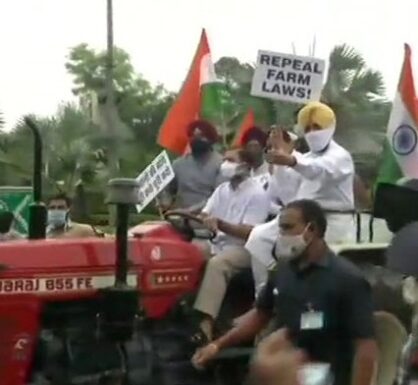 ਨਵੀਂ ਦਿੱਲੀ, 26 ਜੁਲਾਈ ( ਬਿਊਰੋ) – ਕਾਂਗਰਸ ਨੇਤਾ ਰਾਹੁਲ ਗਾਂਧੀ ਖੇਤੀਬਾੜੀ ਕਾਨੂੰਨਾਂ ਦੇ ਵਿਰੋਧ ਵਿਚ ਟਰੈਕਟਰ ਚਲਾ ਕੇ ਸੰਸਦ ਭਵਨ ਪਹੁੰਚੇ |