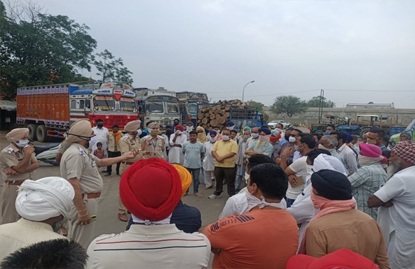 ਲੱਕੜ ਮੰਡੀ ਮੋਗਾ ਦੇ ਕਮਿਸ਼ਨ ਏਜੰਟ ,ਵਪਾਰੀਆਂ, ਡਰਾਈਵਰਾਂ ਅਤੇ ਮਜ਼ਦੂਰਾ ਨੂੰ ਨਸ਼ਿਆਂ ਦੇ ਖਿਲਾਫ਼, ਟ੍ਰੈਫਿਕ ਨਿਯਮਾਂ ਅਤੇ ਕੋਰੋਨਾ ਸਬੰਧੀ ਜਾਗਰੂਕ ਕੀਤਾ