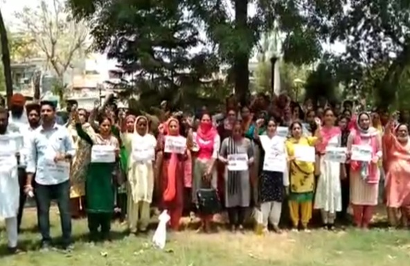 ਤਰਨਤਾਰਨ (ਰਿੰਪਲ ਗੋਲਣ) : ਤਰਨਤਾਰਨ ਵਿਖੇ ਕੱਚੇ ਅਧਿਆਪਕ ਯੂਨੀਅਨ ਪੰਜਾਬ ਵੱਲੋਂ ਤਰਨਤਾਰਨ ਦੇ ਵਿਧਾਇਕ ਡਾ ਧਰਮਵੀਰ ਅਗਨੀਹੋਤਰੀ ਦੇ ਘਰ ਦਾ ਘਿਰਾਓ ਕਰ ਕੇ ਪੰਜਾਬ ਸਰਕਾਰ ਖਿਲਾਫ ਜੰਮ ਕੇ ਨਾਅਰੇਬਾਜ਼ੀ ਕੀਤੀ ਇਸ ਉਪਰੰਤ ਗੱਲਬਾਤ ਕਰਦੇ ਹੋਏ ਕੱਚੇ ਅਧਿਆਪਕ ਯੂਨੀਅਨ ਦੇ ਆਗੂਆਂ ਨੇ ਦੱਸਿਆ ਕਿ ਉਹ ਲਗਾਤਾਰ 2003 ਤੋਂ ਪੰਜਾਬ ਦੇ ਪ੍ਰਾਇਮਰੀ ਸਕੂਲ ਵਿੱਚ ਕੰਮ ਕਰ ਰਹੇ ਸਮੂਹ ਕੱਚੇ ਅਧਿਆਪਕ ਵੀ ਪੁਰਾਣੀਆਂ ਤਨਖਾਹਾਂ ਤੇ ਆਪਣਾ ਗੁਜ਼ਾਰਾ ਬੜੀ ਮੁਸ਼ਕਲ ਨਾਲ ਕਰ ਰਹੇ ਹਨ ਕੈਪਟਨ ਸਰਕਾਰ ਨੇ ਵੋਟਾਂ ਤੋਂ ਪਹਿਲਾਂ ਜਥੇਬਦੀ ਦੇ ਧਰਨਿਆਂ ਵਿੱਚ ਬੈਠ ਕੇ ਵਾਅਦਾ ਕੀਤਾ ਸੀ ਕਿ ਸਾਡੇ ਸਰਕਾਰ ਆਉਣ ਤੇ ਪਹਿਲੀ ਕੈਬਨਿਟ ਵਿੱਚ ਪੰਜਾਬ ਦੇ ਸਾਰੇ ਕੱਚੇ ਅਧਿਆਪਕ ਪੱਕੇ ਕੀਤੇ ਜਾਣਗੇ ਪਰ ਅਜੇ 4 ਸਾਲ ਸਰਕਾਰ ਦੇ ਬੀਤ ਜਾਣ ਤੋਂ ਬਾਅਦ ਵੀ ਰੈਗੂਲਰ ਦੀ ਮੰਗ ਜਿਉਂ ਤੇ ਤਿਉਂ ਖੜ੍ਹੀ ਹੈ ਸਿੱਟੇ ਵਜੋਂ ਸਮੂਹ ਕੱਚੇ ਅਧਿਆਪਕਾਂ ਨੇ 4 ਜੂਨ ਨੂੰ ਸਿੱਖਿਆ ਮੰਤਰੀ ਦੀ ਕੋਠੀ ਅੱਗੇ ਘਿਰਾਓ ਕੀਤਾ ਅਤੇ ਪ੍ਰਸ਼ਾਸਨ ਵੱਲੋਂ 15 ਜੂਨ ਦੀ ਜਥੇਬੰਦੀ ਦੀ ਮੀਟਿੰਗ ਚੰਡੀਗੜ੍ਹ ਵਿਖੇ ਲਿਈ ਗਈ ਜਥੇਬੰਦੀ ਦੇ ਸੂਬਾ ਆਗੂ ਸਤਿੰਦਰ ਕੰਗ ਗੁਰਚਰਨ ਸਿੰਘ ਸੰਧੂ ਨੇ ਕਿਹਾ ਕਿ ਸਰਕਾਰ ਵੱਲੋਂ 27 ਜੂਨ ਨੂੰ ਪੰਜਾਬ ਦੇ ਕੱਚੇ ਅਧਿਆਪਕਾਂ ਦਾ ਜੋ ਪ੍ਰੀ ਪ੍ਰਾਇਮਰੀ ਪੋਸਟ ਲਈ ਟੈਸਟ ਹੋ ਰਿਹਾ ਹੈ ਉਹ 15 ਜੂਨ ਦੀ ਮੀਟਿੰਗ ਵਿਚ ਕੈਂਸਲ ਕਰਦੇ ਹੋਏ 17.18 ਸਾਲ ਦੇ ਤਜਰਬੇ ਨੂੰ ਦੇਖਦੇ ਹੋਏ ਪ੍ਰੀ ਪ੍ਰਾਇਮਰੀ ਪੋਸਟ ਪੱਕੀ ਕੀਤੀ ਜਾਵੇ ਸਰਕਾਰ ਹੁਣ ਵੀ ਕੱਚੇ ਅਧਿਆਪਕ ਪ੍ਰੀ ਪ੍ਰਾਇਮਰੀ ਪੋਸਟ ਉੱਪਰ ਰੈਗੂਲਰ ਨਹੀਂ ਕਰਦੀ ਤਾਂ 17 ਜੂਨ ਨੂੰ ਪਟਿਆਲਾ ਵਿਖੇ ਸੂਬਾ ਪੱਧਰੀ ਰੈਲੀ ਪੰਜਾਬ ਸਮੂਹ ਕੱਚੇ ਅਧਿਆਪਕ ਵੱਲੋਂ ਕੀਤੀ ਜਾਵੇਗੀ