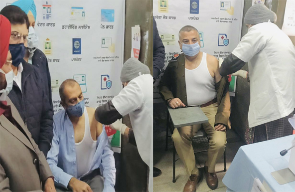 ਹਰਮਨਬੀਰ ਸਿੰਘ ਗਿੱਲ, ਪੀਪੀਐਸ, ਸੀਨੀਅਰ ਕਪਤਾਨ ਪੁਲਿਸ ਮੋਗਾ ਅਤੇ ਸੰਦੀਪ ਹੰਸ, ਆਈ.ਏ.ਐੱਸ, ਡਿਪਟੀ ਕਮਿਸ਼ਨਰ ਮੋਗਾ ਨੇ ਸਿਵਲ ਹਸਪਤਾਲ ਮੋਗਾ ਵਿਖੇ COVID ਸ਼ੀਲਡ ਟੀਕੇ ਦੀ ਪਹਿਲੀ ਡੋਸ ਹਾਸਿਲ ਕੀਤੀ।