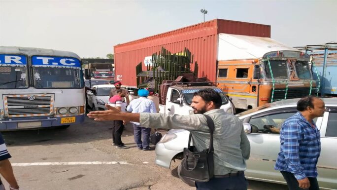 ਲੁਧਿਆਣਾ : ਪਿਸਤੌਲ ਅਤੇ ਹੋਰ ਹਥਿਆਰਾਂ ਦੀ ਨੋਕ ‘ਤੇ ਸਕੂਟਰ ਸਵਾਰ ਦੋ ਬਦਮਾਸ਼ਾਂ ਨੇ ਪੀਆਰਟੀਸੀ ਦੀ ਬੱਸ ਰੋਕ ਕੇ ਕੰਡਕਟਰ ਕੋਲੋਂ ਨਕਦੀ ਲੁੱਟ ਲਈ। ਵਾਰਦਾਤ ਤੋਂ ਬਾਅਦ ਡਰਾਈਵਰ ਨੇ ਬੱਸ ਭਜਾਈ ਅਤੇ ਪੁਲ਼ ‘ਤੇ ਜਾ ਕੇ ਟੇਢੀ ਖੜ੍ਹੀ ਕਰ ਦਿੱਤੀ । ਵਾਰਦਾਤ ਤੋਂ ਬਾਅਦ ਬੁਰੀ ਤਰ੍ਹਾਂ ਗੁੱਸੇ ਵਿੱਚ ਆਏ ਲੋਕਾਂ ਨੇ ਟੋਲ ਪਲਾਜ਼ਾ ‘ਤੇ ਧਰਨਾ ਲਗਾ ਦਿੱਤਾ । ਇਸ ਘਟਨਾ ਤੋਂ ਬਾਅਦ ਬੁੱਧਵਾਰ ਸਵੇਰੇ ਦੋਵੇਂ ਸਾਈਡਾਂ ਤੇ ਸਾਢੇ ਤਿੰਨ ਕਿਲੋਮੀਟਰ ਲੰਬਾ ਜਾਮ ਲੱਗ ਗਿਆ ।
