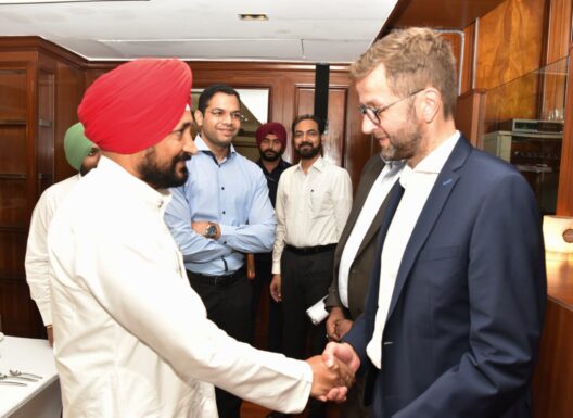 ਮੁੱਖ ਮੰਤਰੀ ਰਾਜ ਵਿੱਚ ਕੰਮ ਕਰ ਰਹੀਆਂ ਜਰਮਨ ਕੰਪਨੀਆਂ ਦੇ ਵਫ਼ਦ ਨਾਲ ਅੱਜ ਇੱਥੇ ਨਾਸ਼ਤੇ ਉੱਚ ਪੱਧਰੀ ਮੀਟਿੰਗ ਦੀ ਪ੍ਰਧਾਨਗੀ ਕਰ ਰਹੇ ਸਨ।