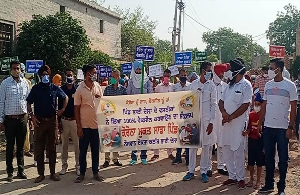 ਭਾਈ ਦੇਸਾ ਪਿੰਡ ’ਚ 100 ਫੀਸਦੀ ਵੈਕਸੀਨੇਸ਼ਨ ਦਾ ਸੱਦਾ ਦਿੰਦਿਆਂ ਚੇਤਨਾ ਰੈਲੀ ਦਾ ਆਯੋਜਨ