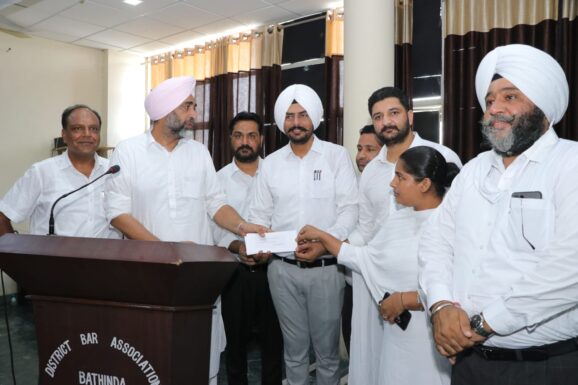 ਬਠਿੰਡਾ 20 ਅਗਸਤ (Harminder Singh Avinash )ਪੰਜਾਬ ਦੇ ਵਿੱਤ ਮੰਤਰੀ ਮਨਪ੍ਰੀਤ ਸਿੰਘ ਬਾਦਲ ਨੇ ਅੱਜ ਬਠਿੰਡਾ ਸ਼ਹਿਰ ਦਾ ਦੌਰਾ ਕਰਦਿਆਂ ਲੋਕਾਂ ਨਾਲ ਸੰਪਰਕ ਕਾਇਮ ਕੀਤਾ। ਉਨ੍ਹਾਂ ਬਠਿੰਡਾ ਬਾਰ ਐਸੋਸੀਏਸ਼ਨ ਵਿੱਚ ਵਕੀਲ ਭਾਈਚਾਰੇ ਦੀ ਮੀਟਿੰਗ ਨੂੰ ਸੰਬੋਧਨ ਕੀਤਾ। ਇਸ ਮੌਕੇ ਉਨ੍ਹਾਂ ਬਾਰ ਐਸੋਸੀਏਸ਼ਨ ਦੇ ਵਿਕਾਸ ਲਈ ਪ੍ਰਧਾਨ ਲਖਇੰਦਰ ਸਿੰਘ ਭਾਈਕਾ ਅਤੇ ਉਨ੍ਹਾਂ ਦੀ ਟੀਮ ਨੂੰ 43 ਲੱਖ ਰੁਪਏ ਦੀ ਗਰਾਂਟ ਦਾ ਚੈੱਕ ਸੌਂਪਿਆ। ਇਸ ਮੌਕੇ ਜ਼ਿਲ੍ਹਾ ਪਲੈਨਿੰਗ ਬੋਰਡ ਦੇ ਚੇਅਰਮੈਨ ਰਾਜਨ ਗਰਗ, ਜ਼ਿਲ੍ਹਾ ਪ੍ਰੀਸ਼ਦ ਦੇ ਵਾਈਸ ਚੇਅਰਮੈਨ ਗੁਰਇਕਬਾਲ ਸਿੰਘ ਚਹਿਲ,ਸਾਬਕਾ ਮੰਤਰੀ ਚਿਰੰਜੀ ਲਾਲ ਗਰਗ ਅਤੇ ਐਡਵੋਕੇਟ ਸੰਦੀਪ ਬਾਘਲਾ ਨੇ ਵਿੱਤ ਮੰਤਰੀ ਦਾ ਧੰਨਵਾਦ ਕੀਤਾ। ਵਿੱਤ ਮੰਤਰੀ ਨੇ ਕਿਹਾ ਕਿ ਵਕੀਲ ਭਾਈਚਾਰੇ ਦਾ ਸਾਡੇ ਸਮਾਜ ਵਿੱਚ ਅਹਿਮ ਸਥਾਨ ਹੈ ਇਸ ਲਈ ਸਾਰਿਆਂ ਨੂੰ ਇਕੱਠੇ ਹੋ ਕੇ ਬਠਿੰਡਾ ਅਤੇ ਸੂਬੇ ਦੀ ਤਰੱਕੀ ਲਈ ਯਤਨਸ਼ੀਲ ਹੋਣਾ ਚਾਹੀਦਾ ਹੈ। ਉਨ੍ਹਾਂ ਕਿਹਾ ਕਿ ਵਕੀਲ ਭਾਈਚਾਰਾ ਲੋਕਾਂ ਨਾਲ ਨੇੜਿਓਂ ਜੁੜਿਆ ਹੋਇਆ ਹੈ ਇਸ ਲਈ ਇਹ ਲੋਕਾਂ ਨੂੰ ਜਾਗਰੂਕ ਕਰ ਕੇ ਸੂਬੇ ਦੀ ਤਰੱਕੀ ਵਿੱਚ ਵਿਸ਼ੇਸ਼ ਯੋਗਦਾਨ ਪਾ ਸਕਦਾ ਹੈ। ਉਨ੍ਹਾਂ ਵਕੀਲ ਭਾਈਚਾਰੇ ਨੂੰ ਵਿਸ਼ਵਾਸ ਦਿਵਾਇਆ ਕਿ ਉਹ ਬਾਰ ਐਸੋਸੀਏਸ਼ਨ ਦੀ ਹਰ ਸੰਭਵ ਮਦਦ ਕਰਨ ਲਈ ਤਿਆਰ ਹਨ। ਇਸ ਮੌਕੇ ਵਕੀਲ ਭਾਈਚਾਰੇ ਨੇ ਵਿਸ਼ਵਾਸ ਦਿਵਾਇਆ ਕਿ ਉਹ ਸ਼ਹਿਰ ਦੀ ਤਰੱਕੀ ਲਈ ਵਿੱਤ ਮੰਤਰੀ ਦਾ ਸਾਥ ਦੇਣਗੇ। ਜ਼ਿਕਰਯੋਗ ਹੈ ਕਿ ਇਸ ਤੋਂ ਪਹਿਲਾਂ ਵੀ ਵਿੱਤ ਮੰਤਰੀ ਵਕੀਲਾਂ ਦੇ ਚੈਂਬਰਾਂ ਲਈ ਲੱਖਾਂ ਰੁਪਏ ਦੀ ਗਰਾਂਟ ਜਾਰੀ ਕਰ ਚੁੱਕੇ ਹਨ। ਬਾਰ ਐਸੋਸੀਏਸ਼ਨ ਦੇ ਆਗੂਆਂ ਨੇ ਦੱਸਿਆ ਕਿ ਵਿੱਤ ਮੰਤਰੀ ਵੱਲੋਂ ਦਿੱਤੀ ਗਈ 43 ਲੱਖ ਰੁਪਏ ਦੀ ਗਰਾਂਟ ਨਾਲ ਵਿਕਾਸ ਦੇ ਅਧੂਰੇ ਰਹਿੰਦੇ ਕੰਮ ਪੂਰੇ ਕੀਤੇ ਜਾਣਗੇ। ਇਸ ਮੌਕੇ ਹੋਰਨਾਂ ਤੋਂ ਇਲਾਵਾ ਬਾਰ ਐਸੋਸੀਏਸ਼ਨ ਦੇ ਪ੍ਰਧਾਨ ਲਖਇੰਦਰ ਸਿੰਘ ਭਾਈਕਾ, ਸੈਕਟਰੀ ਸ਼ਮਿੰਦਰ ਸਿੰਘ ਸੰਧੂ, ਵਾਈਸ ਪ੍ਰਧਾਨ ਗੁਰਪ੍ਰੀਤ ਬਰਾਡ਼, ਜੁਆਇੰਟ ਸੈਕਟਰੀ ਗੌਰਵ ਗੁਪਤਾ, ਅਤੇ ਖਜ਼ਾਨਚੀ ਦਵਿੰਦਰ ਕੌਰ,ਅਰੁਣ ਵਧਾਵਨ, ਕੇ ਕੇ ਅਗਰਵਾਲ, ਅਸ਼ੋਕ ਕੁਮਾਰ ਵੀ ਹਾਜ਼ਰ ਸਨ। ਵਕੀਲ ਭਾਈਚਾਰੇ ਵੱਲੋਂ ਵਿੱਤ ਮੰਤਰੀ ਮਨਪ੍ਰੀਤ ਸਿੰਘ ਬਾਦਲ ਦਾ ਸਨਮਾਨ ਵੀ ਕੀਤਾ ਗਿਆ।
