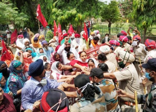 ਮਾਨਸਾ, (ਗੁਰਜੰਟ ਸਿੰਘ ਸ਼ੀਹ) : ਸੀਟੂ, ਪੰਜਾਬ ਕਿਸਾਨ ਸਭਾ ਤੇ ਕੁਲ ਹਿੰਦ ਖੇਤ ਮਜਦੂਰ ਯੂਨੀਅਨ ਦੇ ਦੇਸ਼ ਵਿਆਪੀ ਸੱਦੇ ਤੇ ਭਾਰਤ ਛੱਡੋ ਅੰਦੋਲਨ ਦੀ 78 ਵੀ ਵਰ੍ਹੇਗੰਢ ਮੌਕੇ ਤੇ ਉਪਰੋਕਤ ਤਿੰਨ ਜਥੇਬੰਦੀਆਂ ਦੇ ਕਾਰਕੁਨਾਂ ਨੇ ਜਿਲ੍ਹਾ ਹੈੱਡਕੁਆਟਰ ਤੇ ਸੱਤਿਆਗ੍ਰਹਿ ਕੀਤਾ ਤੇ ਆਪਣੇ ਆਪ ਨੂੰ ਗ੍ਰਿਫਤਾਰੀਆਂ ਲਈ ਪੇਸ਼ ਕੀਤਾ, ਜਿਲ੍ਹਾ ਪੁਲਿਸ ਪ੍ਰਸ਼ਾਸਨ ਨੇ ਗ੍ਰਿਫਤਾਰ ਕਰਨ ਤੋਂ ਕੀਤੇ ਹੱਥ ਖੜ੍ਹੇ। ਪ੍ਰਦਰਸ਼ਨਕਾਰੀਆਂ ਨੇ ਮੰਗ ਕੀਤੀ ਕਿ ਰਾਸ਼ਟਰੀ ਸੰਪਤੀ ਨੂੰ ਵੇਚਣਾ ਬੰਦ ਕੀਤਾ ਜਾਵੇ , ਠੇਕੇਦਾਰੀ ਮਜਦੂਰ ਪ੍ਰਬੰਧ ਖਤਮ ਕੀਤਾ ਜਾਵੇ, ਘੱਟ ਗਿਣਤੀਆਂ, ਦਲਿਤਾਂ ਤੇ ਅੋਰਤਾਂ ਤੇ ਕੀਤੇ ਜਾ ਰਹੇ ਹਮਲੇ ਬੰਦ ਕੀਤੇ ਜਾਣ , ਕਿਰਤ ਕਾਨੂੰਨਾਂ ਵਿੱਚ ਮਜਦੂਰ ਵਿਰੋਧੀ ਸੋਧਾਂ ਵਾਪਸ ਲਈਆ ਜਾਣ ,ਖੇਤੀ ਨੂੰ ਬਰਬਾਦ ਕਰਨ ਵਾਲੇ ਆਰਡੀਨੈਂਸ ਵਾਪਸ ਲਏ ਜਾਣ, ਬਿਜਲੀ ਐਕਟ 2020 ਰੱਦ ਕੀਤਾ ਜਾਵੇ, ਕਰੋਨਾ ਸੰਕਟ ਕਾਰਨ ਕੰਗਾਲ ਹੋਏ ਲੋਕਾ ਨੂੰ ਆਰਥਿਕ ਮਦਦ ਦਿੱਤੀ ਜਾਵੇ, ਕਿਸਾਨਾਂ, ਮਜਦੂਰਾ ਸਿਰ ਚੜੇ ਕਰਜੇ ਮਾਫ ਕੀਤੇ ਜਾਣ, ਮੈਡੀਕਲ ਸਹੂਲਤਾਂ ਹਰੇਕ ਭਾਰਤੀ ਨੂੰ ਫਰੀ ਮੁਹੱਈਆ ਕਰਵਾਈਆਂ ਜਾਣ ,ਹਰੇਕ ਵਿਅਕਤੀ ਨੂੰ ਪ੍ਰਤੀ ਮਹੀਨਾ 10 ਕਿੱਲੋ ਅਨਾਜ ਫਰੀ ਦਿੱਤਾ ਜਾਵੇ ,ਪੰਜਾਬ ਵਿੱਚੋਂ ਨਸ਼ਿਆਂ ਦਾ ਨੈੱਕਸੈਸ਼ ਤੋੜਿਆ ਜਾਵੇ ਤੇ ਦੋਸੀਆਂ ਨੂੰ ਬਣਦੀ ਸਜ਼ਾ ਦਿੱਤੀ ਜਾਵੇ , ਬੇਰੁਜਗਾਰੀ ਨੂੰ ਠੱਲ ਪਾਈ ਜਾਵੇ ਤੇ ਨੌਜਵਾਨਾਂ ਨੂੰ ਰੁਜਗਾਰ ਦੇ ਮੌਕੇ ਮੁਹੱਈਆ ਕਰਵਾਏ ਜਾਣ । ਇਸ ਮੌਕੇ ਤੇ ਸੰਬੋਧਨ ਕਰਦਿਆਂ ਸੀਪੀਆਈ(ਐਮ) ਦੇ ਸੂਬਾ ਸਕੱਤਰੇਤ ਮੈਬਰ ਤੇ ਸੈਂਟਰਲ ਆਫ ਇੰਡੀਅਨ ਟਰੇਡ ਯੂਨੀਅਨ (ਸੀਟੂ) ਦੇ ਸੂਬਾ ਸਕੱਤਰ ਐਡਵੋਕੇਟ ਕੁਲਵਿੰਦਰ ਸਿੰਘ ਉੱਡਤ , ਪੰਜਾਬ ਕਿਸਾਨ ਸਭਾ ਦੇ ਜਿਲ੍ਹਾ ਪ੍ਰਧਾਨ ਸਾਥੀ ਹਰਨੇਕ ਸਿੰਘ ਖੀਵਾ , ਅਾਗਣਵਾੜੀ ਮੁਲਾਜਮ ਯੂਨੀਅਨ ( ਸੀਟੂ ) ਦੇ ਜਿਲ੍ਹਾ ਸਕੱਤਰ ਚਰਨਜੀਤ ਕੌਰ ਮਾਨਸਾ ਤੇ ਬਲਾਕ ਪ੍ਰਧਾਨ ਅਵਿਨਾਸ਼ ਕੌਰ ਮਾਨਸਾ ਨੇ ਕਿਹਾ ਕਿ ਸੰਘੀ ਮੋਦੀ ਦੀ ਅਗਵਾਈ ਵਿੱਚ ਲਗਾਤਾਰ ਦੋ ਵਾਰ ਲੋਕ ਸਭਾ ਚੋਣਾਂ ਜਿੱਤਣ ਕਾਰਨ ਆਪਣੇ ਆਪ ਨੂੰ ਅਜਿੱਤ ਸਮਝਣ ਲੱਗ ਪਏ ਹਨ ਤੇ ਦੇਸ਼ ਦੇ ਜਮਹੂਰੀ, ਧਰਮ ਨਿਰਪੱਖ ਤੇ ਸੰਘੀ ਢਾਂਚੇ ਨੂੰ ਤੋੜ ਕੇ ਹਿੰਦੂ ਰਾਸ਼ਟਰ ਬਣਾਉਣ ਦੀਆ ਸ਼ਾਜਿਸ਼ਾ ਰੱਚ ਰਹੇ ਹਨ , ਪਰ ਸ਼ੰਘੀ ਇਹ ਭੁੱਲ ਗਏ ਕਿ ਬ੍ਰਿਟਿਸ਼ ਸਾਮਰਾਜ ਵਿੱਚ ਸੂਰਜ ਨਹੀਂ ਸ਼ਿਪਦਾ ਸੀ । ਭਾਰਤ ਦੇ ਮਿਹਨਤਕਸ਼ ਲੋਕ ਫਾਸੀਵਾਦੀ ਤਾਕਤਾਂ ਨੂੰ ਵੀ ਅੰਗਰੇਜਾਂ ਵਾਗ ਹਰਾਕੇ ਦਮ ਲੈਣਗੇ । ਇਸ ਮੌਕੇ ਤੇ ਹੋਰਨਾਂ ਤੋਂ ਇਲਾਵਾ ਪੰਜਾਬ ਕਿਸਾਨ ਸਭਾ ਦੇ ਸਾਥੀ ਸਵਰਨਜੀਤ ਸਿੰਘ ਦਲਿਓ, ਬਲਵਿੰਦਰ ਸਿੰਘ ਕੋਟਧਰਮੂ ,ਸੀਟੂ ਆਗੂ ਤੇਜਾ ਸਿੰਘ ਹੀਰਕੇ ,ਰਾਜ ਕੁਮਾਰ ਗਰਗ, ਗੁਰਪਿਆਰ ਸਿੰਘ ਫੱਤਾ , ਅਮਨਜੀਤ ਕੌਰ ਮਾਨਸਾ , ਕਾਲਾ ਖਾ ਭੰਮੇ , ਸਰੇਸ਼ ਕੁਮਾਰ , ਰਾਜੂ ਗੋਸਵਾਮੀ , ਸੰਕਰ ਸਿੰਘ ਟਿੱਬੀ , ਸਿਮਰੁ ਬਰਣ , ਗੁਰਜੰਟ ਕੋਟੜਾ , ਗੁਰਤੇਜ ਸਿੰਘ ਭੂਪਾਲ , ਮੀਨੂ ਮਾਨਸਾ ,ਦੇਸਰਾਜ ਕੋਟਧਰਮੂੰ , ਜਗਤਾਰ ਸਿੰਘ ਤਾਰਾ ਆਦਿ ਨੇ ਵੀ ਵਿਚਾਰ ਪੇਸ਼ ਕੀਤੇ।