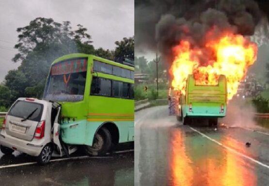 ਬੱਸ ਕਾਰ ਦੇ ਉੱਪਰ ਚੜ੍ਹ ਗਈ। ਕਾਰ ‘ਚ ਸਵਾਰ ਸਾਰੇ 5 ਲੋਕ ਬੁਰੀ ਤਰ੍ਹਾਂ ਫਸ ਗਏ। ਥੋੜ੍ਹੀ ਹੀ ਦੇਰ ਬਾਅਦ ਕਾਰ ਵਿਚ ਅੱਗ ਲੱਗ ਗਈ ਅਤੇ 5 ਲੋਕਾਂ ਦੀ ਮੌਕੇ ‘ਤੇ ਹੀ ਸੜ ਕੇ ਮੌਤ ਹੋ ਗਈ। ਹਾਦਸੇ ਵਿਚ ਮਾਰੇ ਗਏ ਲੋਕਾਂ ਦੀਆਂ ਲਾਸ਼ਾਂ ਇੰਨੀ ਬੁਰੀ ਤਰ੍ਹਾਂ ਸੜ ਗਈਆਂ ਹਨ ਕਿ ਉਨ੍ਹਾਂ ਦੀ ਪਹਿਚਾਣ ਮੁਸ਼ਕਲ ਹੋ ਗਈ ਹੈ।