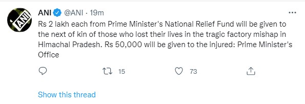 ਤੇ ਕਈ ਔਰਤਾਂ ਇਸ ਹਾਦਸੇ ‘ਚ ਝੁਲਸ ਗਈਆਂ। ਜਾਣਕਾਰੀ ਮੁਤਾਬਿਕ ਇਸ ਹਾਦਸੇ ‘ਚ ਜਾਨਾਂ ਗੁਆਉਣ ਵਾਲਿਆਂ ਦੇ ਪਰਿਵਾਰਾਂ ਨੂੰ ਪ੍ਰਧਾਨ ਮੰਤਰੀ ਰਾਸ਼ਟਰੀ ਰਾਹਤ ਫ਼ੰਡ ਵਿਚੋਂ 2-2 ਲੱਖ ਰੁਪਏ ਅਤੇ ਜ਼ਖਮੀਆਂ ਲਈ 50,000 ਰੁਪਏ ਦਿੱਤੇ ਜਾਣਗੇ।