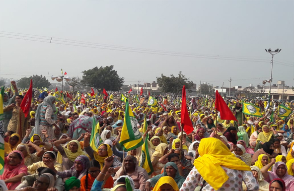 ਮਹਾ ਰੈਲੀ ਵਿਚ ਸ਼ਾਮਲ ਹਜ਼ਾਰਾਂ ਦੀ ਤਦਾਦ ਸਿਰ ਤੇ ਪੀਲੀਆਂ ਚੁੰਨੀਆਂ ਲੈ ਤੇ ਹੱਥਾਂ ‘ਚ ਕਿਸਾਨੀ ਝੰਡੀ ਫੜ ਕੇ ਕਿਸਾਨ ਤੇ ਮਜ਼ਦੂਰ ਔਰਤਾਂ ਨੇ ਇਕ ਵੱਖਰਾ ਇਤਿਹਾਸ ਸਿਰਜ ਦਿੱਤਾ ਹੈ।